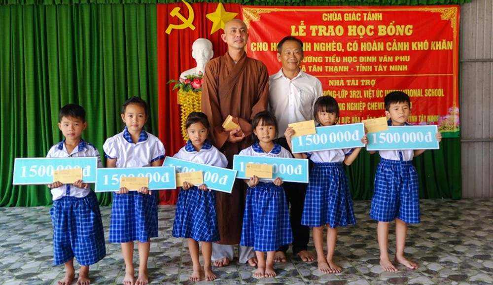 Dịp này, chùa Giác Tánh đã trao gần 50 suất học bổng, mỗi suất trị giá 1.500.000 đồng, cùng 400 lốc sữa tươi, với tổng giá trị khoảng 100 triệu đồng gửi tặng các em học sinh có hoàn cảnh khó khăn. Những phần quà thiết thực này thể hiện sự quan tâm của Đại đức Thích Trí Lực và các nhà hảo tâm đối với thế hệ trẻ – những mầm non tương lai của đất nước.