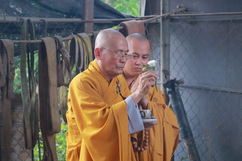 Quang lâm chứng minh và tác lễ chú nguyện có HT. Thích Quán Chơn – Chứng minh BTS GHPGVN TP. Huế, trụ trì chùa Từ Ân; cùng chư Tôn đức Tăng Ni và Phật tử chùa Linh Nguyên về tham dự.