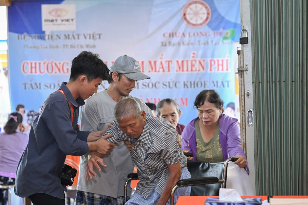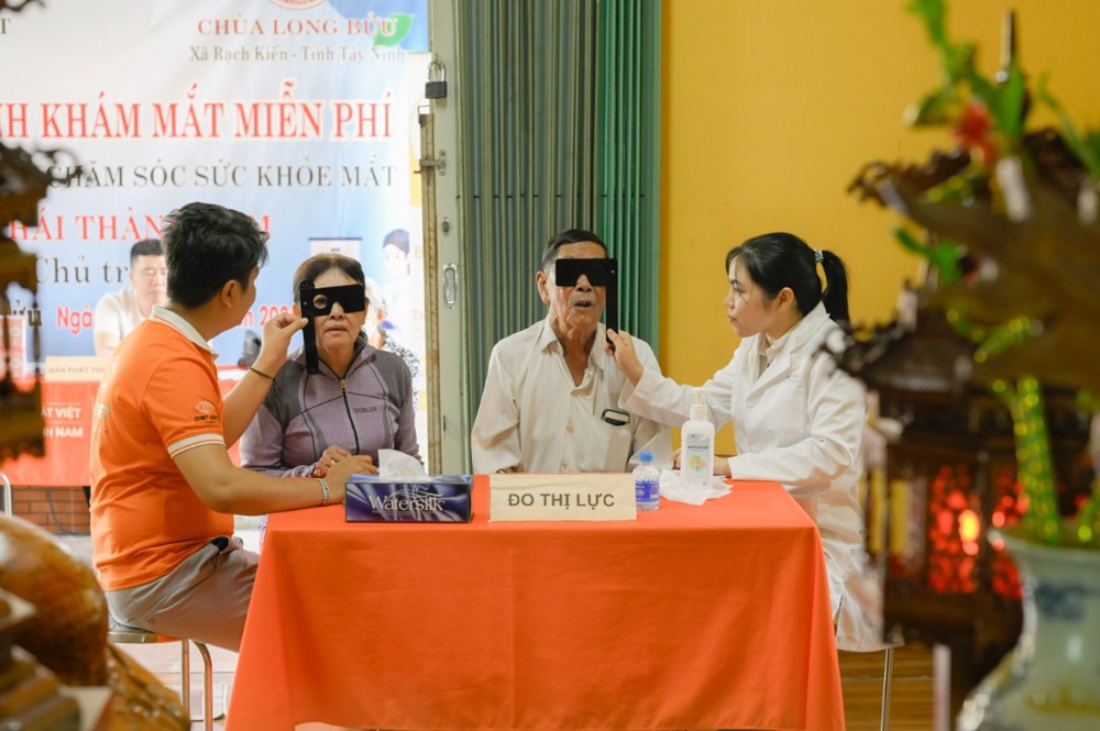 Từ đầu giờ sáng, bà con đã tập trung về chùa để đăng ký và chờ đến lượt thăm khám. Hội Chữ thập đỏ, Công an xã và lực lượng Dân quân tự vệ xã Rạch Kiến phối hợp hỗ trợ công tác hướng dẫn, phân luồng, giữ gìn trật tự, tạo điều kiện thuận lợi cho người cao tuổi trong quá trình di chuyển. Song song đó, đội ngũ y, bác sĩ Bệnh viện Mắt Việt đã nhanh chóng bố trí các trang thiết bị chuyên môn như máy đo khúc xạ, đèn sinh hiển vi, máy soi đáy mắt…, bảo đảm hoạt động thăm khám diễn ra đúng quy trình, chính xác và hiệu quả.