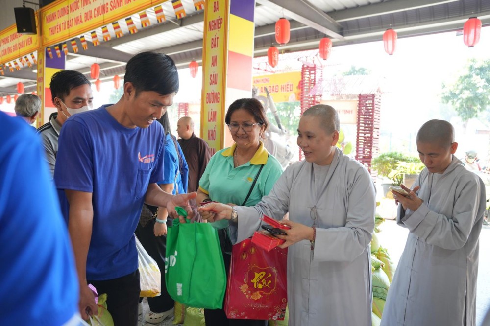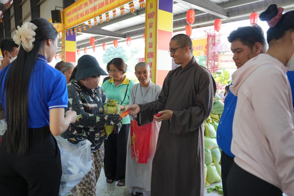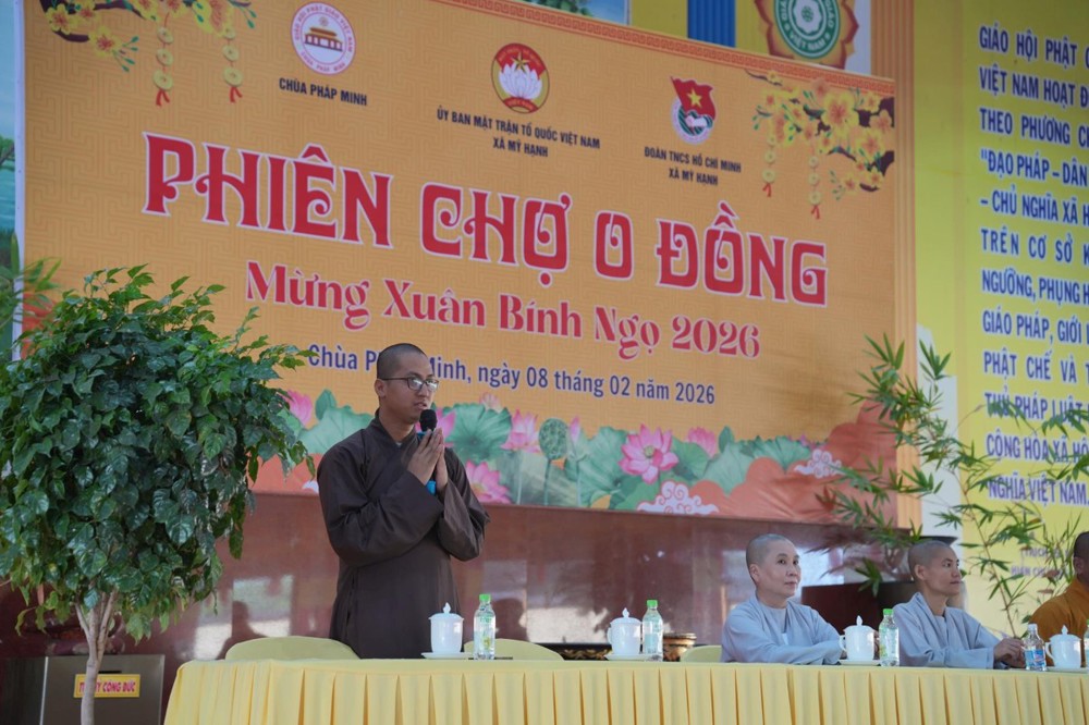 Phát biểu tại lễ khai mạc, TT. Thích Lệ Duyên – Trưởng Ban Tổ chức nhấn mạnh, việc tổ chức Phiên chợ 0 đồng thể hiện tinh thần từ bi của người con Phật, đồng thời cũng là một phương pháp tu tập, góp phần chăm lo đời sống cho người dân có hoàn cảnh khó khăn trong dịp Tết đến, Xuân về. Chùa Pháp Minh thường xuyên duy trì các hoạt động an sinh xã hội từ năm 2016 đến nay. Dịp này, Thượng tọa cũng gửi lời tri ân đến gia đình cô Trương Minh Tuyết cùng nhóm bạn, Phật tử Diệu Nhứt, Ban Phụng sự chùa Pháp Minh, chùa Tân Phước… đã chung tay đóng góp, hỗ trợ để phiên chợ được tổ chức thành công tốt đẹp, với tổng kinh phí hơn 250 triệu đồng.