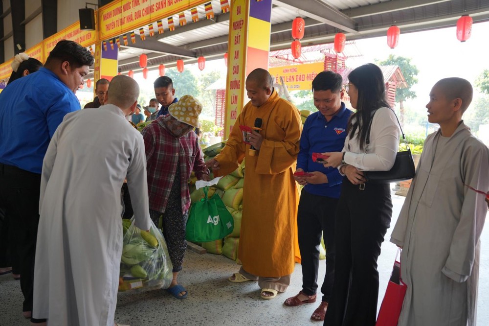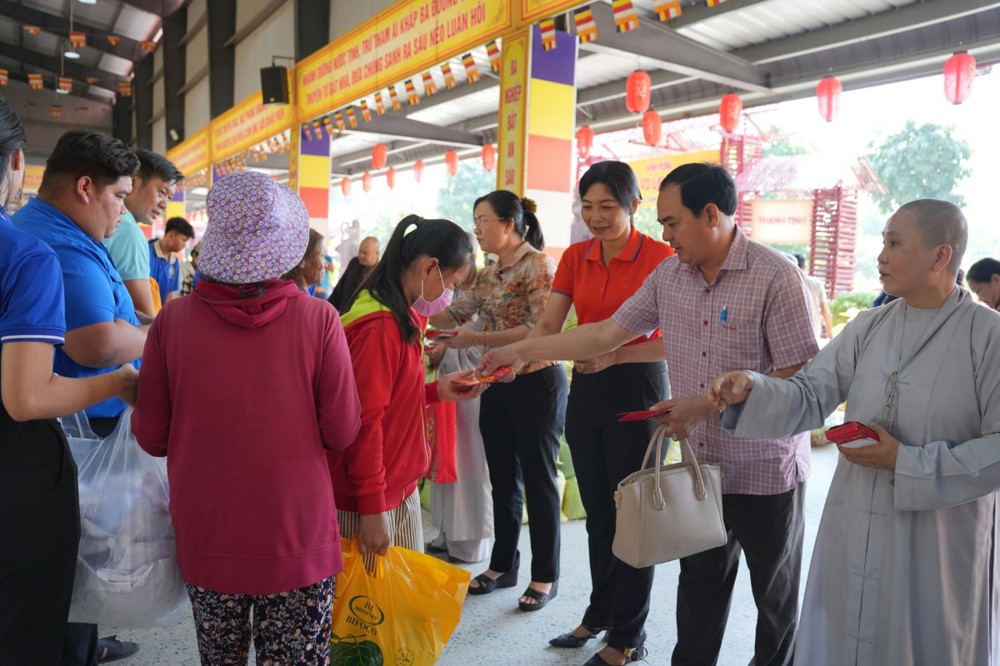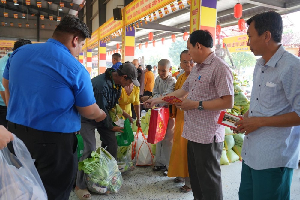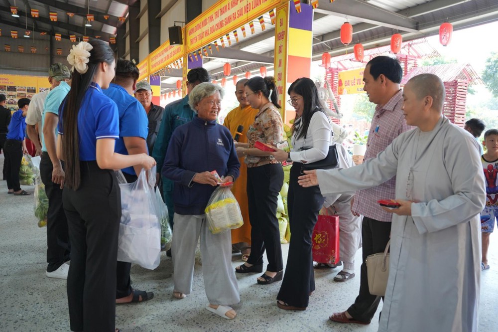 Quang lâm chứng minh và tham dự phiên chợ có: TT. Thích Lệ Duyên – Phó Trưởng ban kiêm Chánh Thư ký BTS GHPGVN tỉnh Tây Ninh, Trưởng Ban Tổ chức; TT. Thích Thiện Trực; NS. TN. Huệ Như – Ủy viên BTS GHPGVN tỉnh; bà Phùng Cẩm Loan – Bí thư Đảng ủy, Chủ tịch HĐND xã Mỹ Hạnh; ông Lê Văn Tân – Phó Chủ tịch HĐND xã Mỹ Hạnh; bà Lê Thị Ngọc Kim – Chủ tịch Ủy ban MTTQVN xã Mỹ Hạnh; bà Nguyễn Thị Tú Trinh – Trưởng phòng Văn hóa – Xã hội xã Mỹ Hạnh; ông Huỳnh Võ Duy Phương – Phó Trưởng phòng Văn hóa – Xã hội xã Đức Hòa; ông Lê Khắc Huy – Phó Chủ tịch Ủy ban MTTQVN xã, Bí thư Đoàn TNCS Hồ Chí Minh xã Mỹ Hạnh.