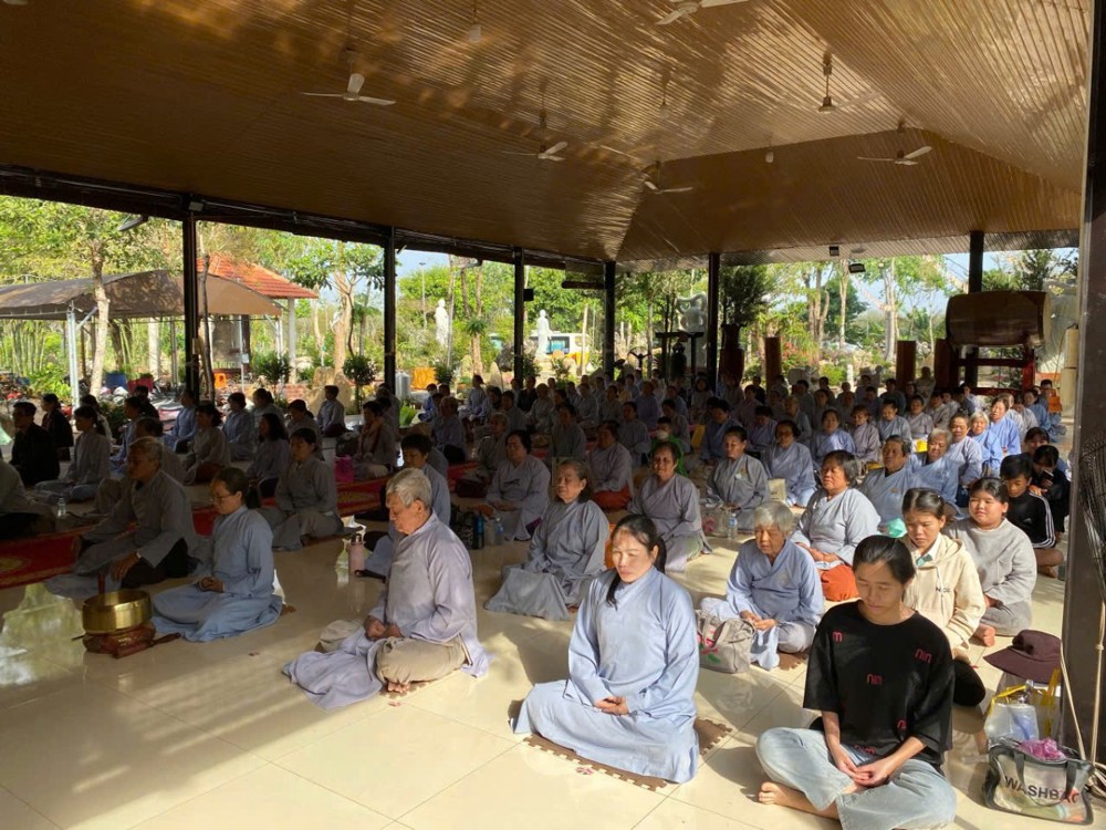 Sau giờ nghỉ trưa, vào lúc 13g30, đại chúng tiếp tục bước vào thời khóa niệm Phật và thực tập bước đi trong chánh niệm, duy trì năng lượng tu tập xuyên suốt ngày khóa tu.