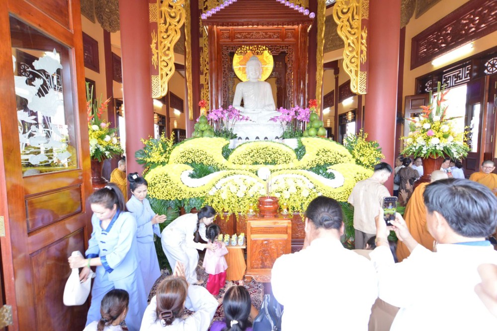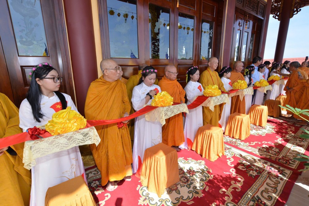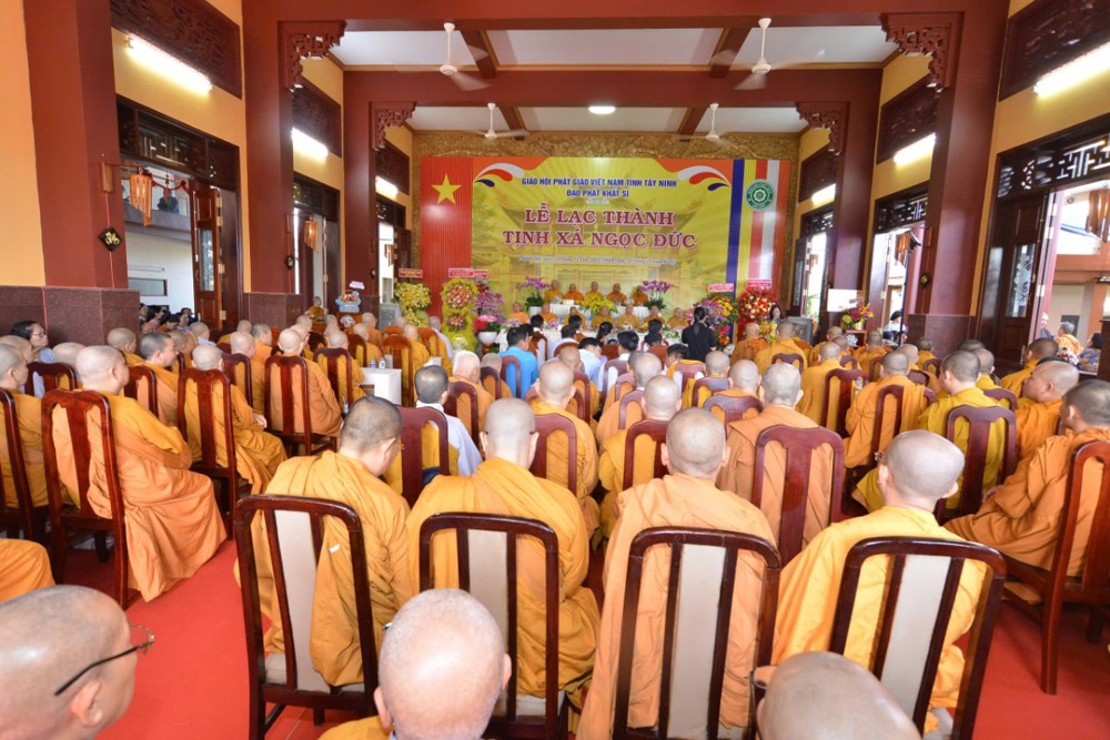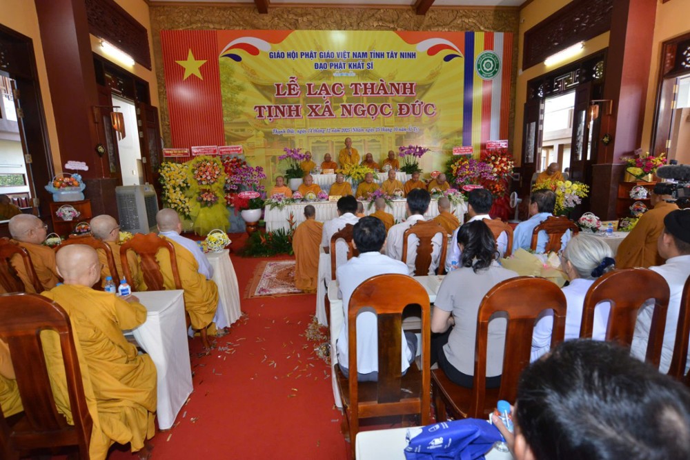 Chư Tôn Đức Tăng Ni và Chính quyền các cấp chính thức cắt băng Khánh thành Tịnh xá Ngọc Đức và cử hành nghi thức An Vị Phật , hữu nhiễu kim thân Đức Phật cầu nguyện “Quốc thới Dân an”.