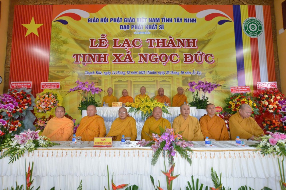 Quang lâm chứng minh: Hòa thượng Thích Minh Thiện - Ủy viên (UV) Hội đồng Trị sự (HĐTS), Phó Trưởng Ban Hoằng pháp Trung ương, Chứng minh Cố vấn Ban Trị sự (BTS) GHPGVN tỉnh Tây Ninh; Hòa thượng Giác Pháp – UV HĐTS, Phó Trưởng Ban Nghi lễ Trung ương, Phó Trưởng Ban thường trực Ban thường trực Giáo phẩm Hệ phái (GPHP) Phật giáo Khất sĩ, Trị sự trưởng Giáo đoàn 5, Trụ trì Tịnh xá Trung Tâm ( Phú Lâm); Hòa thượng Giác Nhân – UV HĐTS, Phó Trưởng Ban Hướng dẫn Phật tử Trung ương, GPHP, Tri sự phó thường trực Giáo đoàn 5, Trụ trì Tịnh xá Ngọc Lợi (Đồng Tháp); Hòa thượng Minh Lộc – Phó Trưởng Ban Từ thiện Xã hội Trung ương, GPHP, Trụ trì Tịnh xá Ngoc Thiền (Lâm Đồng); Thượng tọa Thích Quảng Tâm – UV HĐTS, Phó Trưởng Ban Từ thiện Xã hội Trung ương, Trưởng BTS GHPGVN tỉnh Tây Ninh; Hòa thượng Giác Thông – UV Ban Kiểm Soát Trung ương, Phó Trưởng BTS GHPGVN TP. HCM, GPHP, Trụ trì Tu viện Pháp Viên (TP. HCM); Hòa thượng Giác Xuân – GPHP, Trụ trì Tịnh xá Ngọc Triệu (TP. HCM); Hòa thượng Giác Thanh – GPHP, Quản chúng Tịnh xá Trung Tâm (Phú Lâm); Đại đức Thích Huệ Chơn ( Minh Đăng ) – Phó BTS GHPGVN tỉnh Tây Ninh, Phó Thư ký Giáo đoàn 6, Trụ trì Tịnh xá Ngọc Như (Tây Ninh); Ni trưởng Châu Liên – Cố vấn Phân ban Ni giới (PBNG) Trung ương, chứng minh PBNG GHPGVN tinh Tây Ninh; Ni trưởng Hiệp Liên – Chứng minh PBNG tinh Tây Ninh; Ni trưởng Như Tâm – Phó BTS kiêm Trưởng PBNG GHPGVN tỉnh Tây Ninh; Ni trưởng Tuyết Liên – Đại diện Chư Tôn đức Ni Giáo đoàn 4; Ni trưởng Tín Liên – UV HĐTS, Giáo phẩm Ni giới, Chánh Thư ký Ni giới Khất sĩ; Ni sư Hòa Liên – UV HĐTS, Phó Trưởng PBNG trung ương, Phó Chánh Văn phòng 2 Trung ương; Ni sư Tâm Liên – UV PBNG Trung ương, Chứng minh PBNG GHPGVN tỉnh Tây Ninh cùng sự tham dự của Chư Tôn Đức Tăng Ni Hệ phái Phật giáo Khất sĩ, Chư Tôn Đức Tăng Ni Trụ trì, Trú xứ các tự viện, đại diện Ban cai quản Thánh thất Thạnh Đức, đông đảo quý Phật tử trong và ngoài tỉnh đồng tham dự.