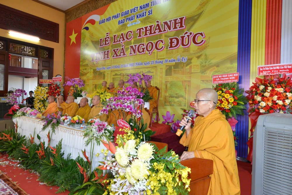 Hòa thượng Thích Minh Thiện - Ủy viên (UV) Hội đồng Trị sự (HĐTS), Phó Trưởng Ban Hoằng pháp Trung ương, Chứng minh Cố vấn Ban Trị sự (BTS) GHPGVN tỉnh Tây Ninh thay lời Ban Chứng minh ban Đạo từ tán thán tinh thần phụng sự của Ni sư trụ trì vì sự phát triển chung của GHPGVN tỉnh Tây Ninh. Hòa thượng tin tưởng rằng với sự hướng dẫn và điều hành của Ni sư Hạnh Liên, Tịnh xá Ngọc Đức ngày càng phát triển, hướng dẫn Chư Ni và Phật tử tu học đúng Chánh Pháp.