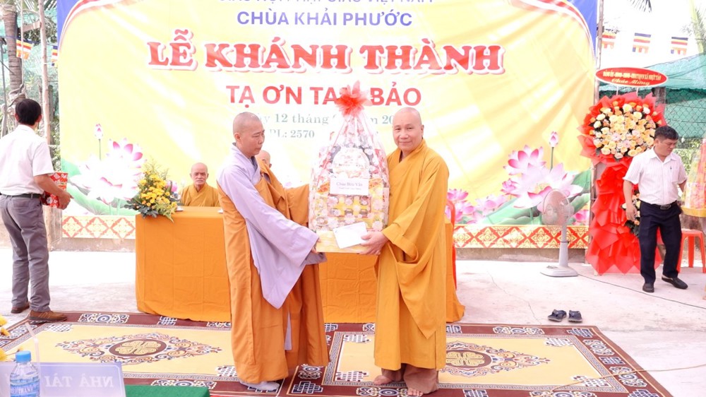Ban đạo từ tại buổi lễ, Hòa thượng Thích Minh Thiện đã tán thán đạo tâm kiên cố của Ni chúng. Hòa thượng nhấn mạnh, sự hồi sinh mạnh mẽ của chùa Khải Phước từ vùng đất từng chịu nhiều đau thương do chiến tranh là minh chứng sống động cho tinh thần dấn thân, vô úy của người con Phật. Đồng thời, Ngài kỳ vọng chùa sẽ tiếp tục phát huy truyền thống hoằng pháp lợi sinh, trở thành điểm tựa tâm linh vững chắc cho cộng đồng.