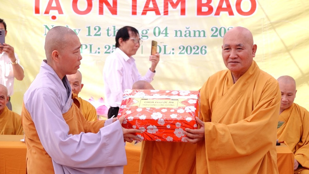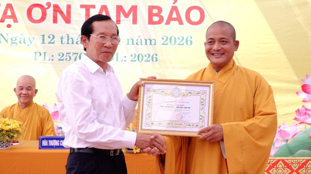 Ghi nhận những đóng góp to lớn này, đại diện Giáo hội đã trao tặng khánh vàng chúc mừng và Giấy khen nhằm tri ân chư Ni bổn tự cùng các nhà tài trợ.