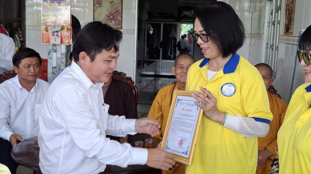 Tại buổi lễ, chư Tôn đức, đại diện nhà tài trợ và chính quyền địa phương đã có những phát biểu ý nghĩa, nhấn mạnh tinh thần từ bi, sẻ chia của người con Phật cũng như tấm lòng hướng về quê hương của kiều bào xa xứ. Đại diện chính quyền đã trao Thư cảm tạ và Giấy khen nhằm ghi nhận những đóng góp thiết thực của các đơn vị tài trợ.