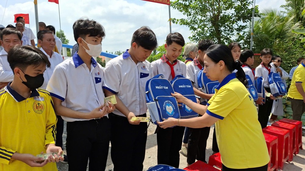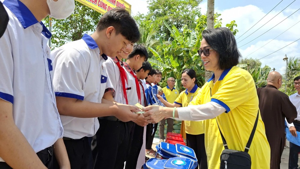 Ngay sau nghi thức cắt băng khánh thành, Ban Tổ chức đã trao tặng 100 phần quà với tổng trị giá 40 triệu đồng do gia đình Phật tử Phan Hinh, Thảo Vũ (Hoa Kỳ) tài trợ, gồm: 50 phần quà dành cho hộ nghèo, trị giá 500.000 đồng/phần (gạo, mì gói và nhu yếu phẩm); 50 phần quà dành cho học sinh, trị giá 300.000 đồng/phần (cặp sách và dụng cụ học tập).