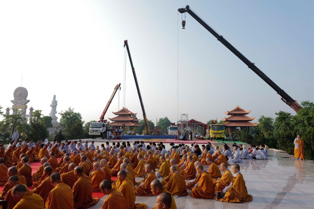 Sau khi dâng hương bạch Phật tác lễ cầu nguyện, chư tôn Hòa thượng, chư tôn đức Tăng Ni cùng toàn thể đại chúng nhất tâm hòa điệu, tụng kinh cầu nguyện khởi dựng ngôi Đại hùng bảo điện và Tổ đường. Toàn thể đại chúng một lòng ngưỡng nguyện hồng ân Tam bảo, mười phương Như Lai Thế Tôn đồng lực gia trì; chư Bồ-tát, hiền thánh Tăng, chư hộ giáo, hộ giới, hộ pháp gia bị, hộ trì cho Phật sự được thành tựu như nguyện.