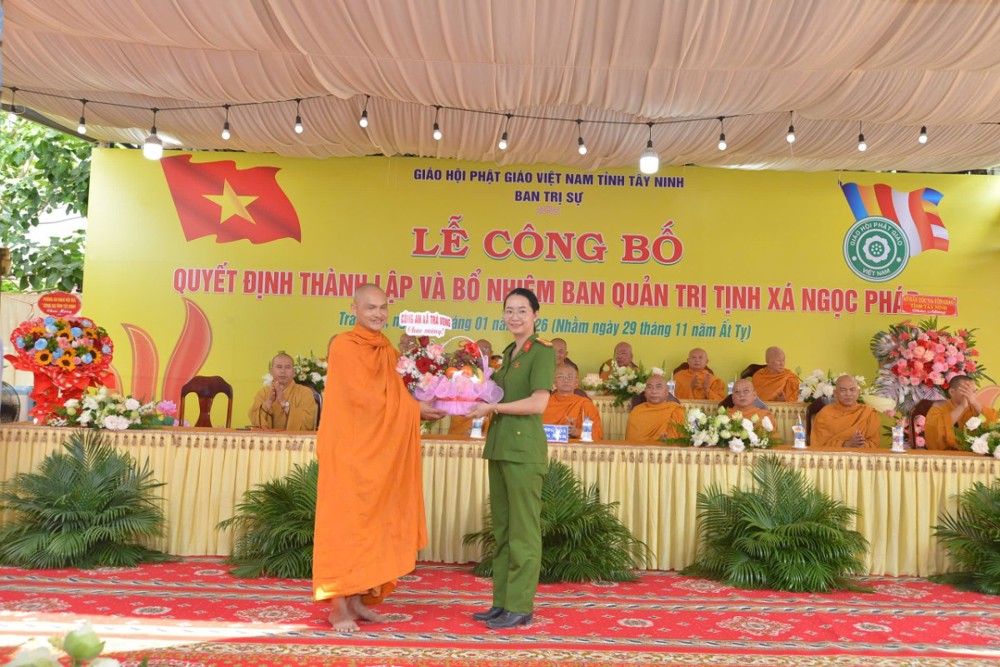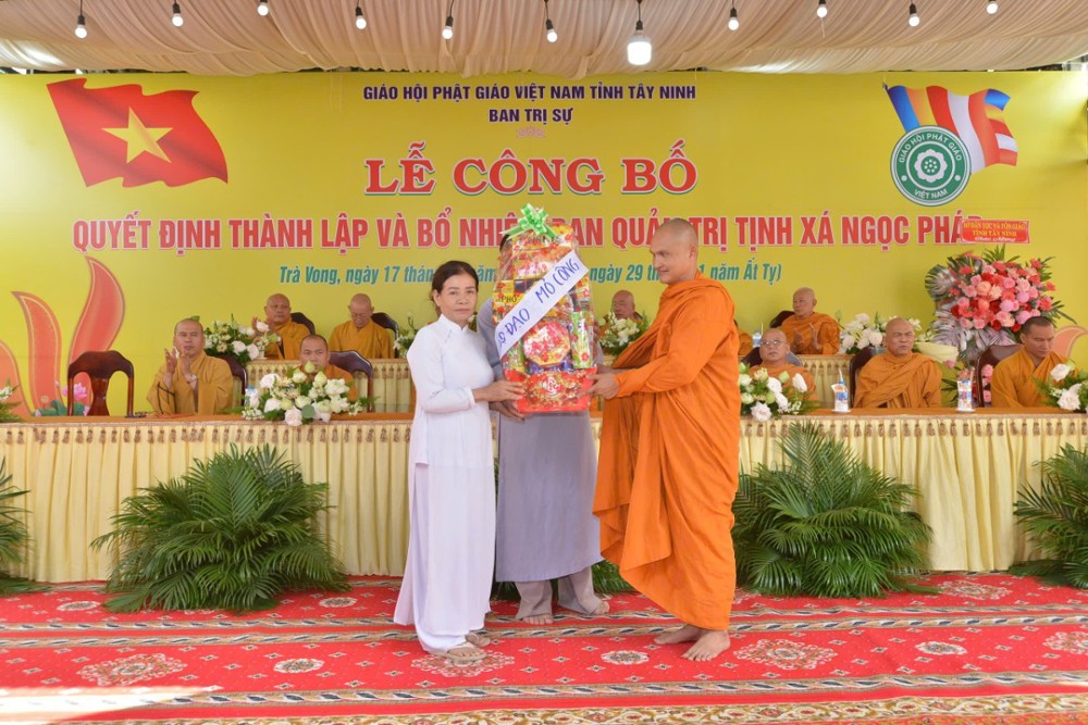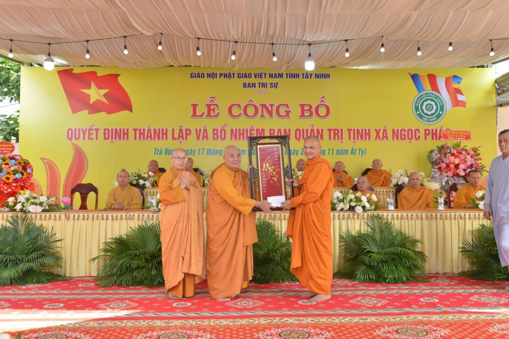 Tại buổi lễ, TT. Thích Thiện Thức – Phó Trưởng Ban Thường trực BTS GHPGVN tỉnh đã tuyên đọc Công văn số 9009/UBND-NC của UBND tỉnh Tây Ninh về việc chấp thuận Đề nghị của BTS GHPGVN tỉnh Tây Ninh thành lập Ban Quản trị Tịnh xá Ngọc Pháp, xã Trà Vong, tỉnh tây Ninh là tổ chức tôn giáo trực thuộc BTS GHPGVN tỉnh.