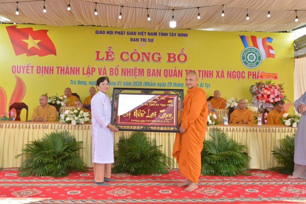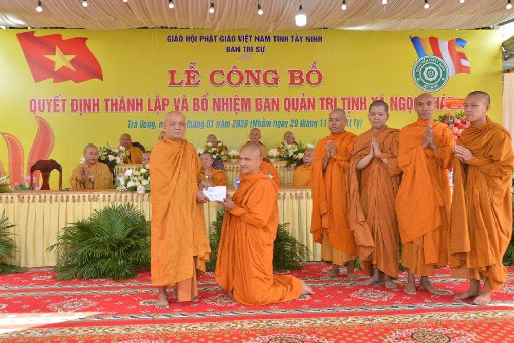 PSO - Sáng ngày 17/01/2026 (nhằm ngày 29/11/Ất Tỵ), BTS GHPGVN tỉnh Tây Ninh trang nghiêm tổ chức Lễ công bố và trao quyết định bổ nhiệm Ban Quản trị Tịnh xá Ngọc Pháp, xã Trà Vong, tỉnh Tây Ninh.