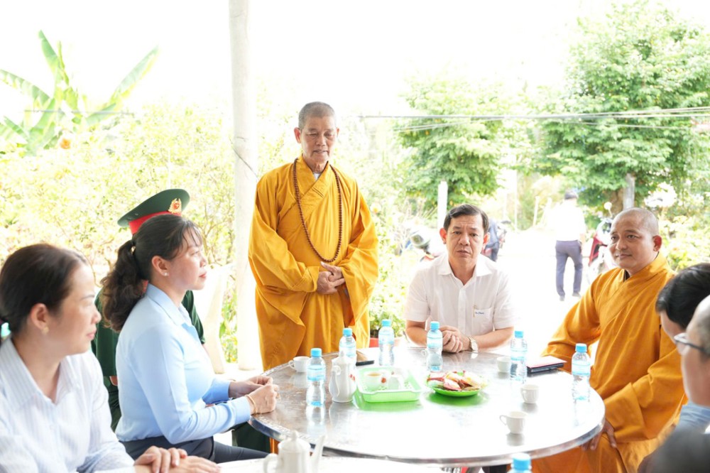 Tại buổi lễ, Thượng tọa Thích Lệ Tấn đã phát biểu tán thán tinh thần trách nhiệm và sự hỗ trợ tích cực của chính quyền địa phương trong công tác chuẩn bị. Thượng tọa cũng tri ân sâu sắc các mạnh thường quân, sự đối ứng ngân sách của ba xã; đặc biệt ghi nhận tâm nguyện của Hòa thượng Thích Chơn Tịnh (chùa Thường Quang, TP.HCM), đạo tràng chùa Giác Hoa và công đức phát tâm 50 triệu đồng của Thượng tọa Thích Lệ Duyên (chùa Pháp Minh), góp phần đẩy nhanh tiến độ công trình.