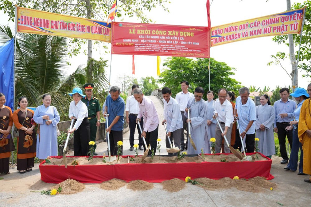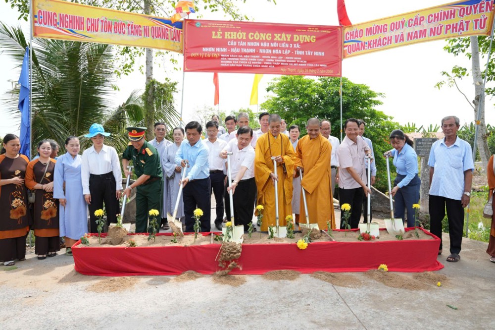 PSO - Sáng ngày 25/02/2026, tại xã Hậu Thạnh, tỉnh Tây Ninh, Ban Trị sự GHPGVN tỉnh Tây Ninh, đại diện Phật giáo liên xã Nhơn Ninh – Hậu Thạnh đã phối hợp cùng chính quyền địa phương long trọng tổ chức Lễ khởi công xây dựng cầu Tân Nhơn Hậu và nâng cấp cầu giao thông liên ấp.