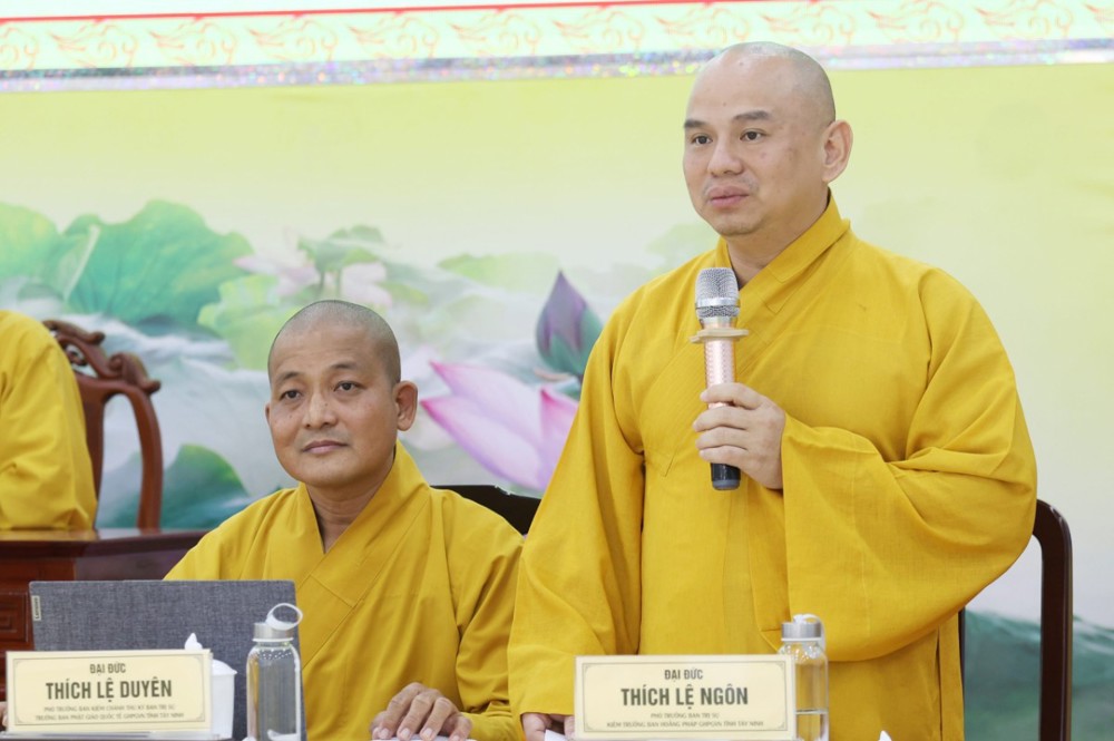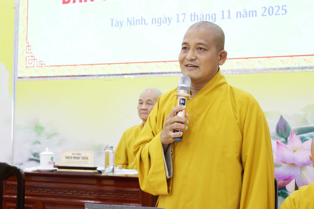 ĐĐ. Thích Thiện Danh – Phó Thư ký BTS GHPGVN tỉnh thông qua một số văn bản về các Phật sự trọng tâm trong thời gian tới như tổ chức khóa tập huấn hành chính giáo hội năm 2025 trong 3 ngày 24 - 26/11/2025, trong suốt khóa tập huấn sẽ không in ấn tài liệu giấy, tất cả tài liệu sẽ được cung cấp dưới dạng điện tử; Đại đức trình đến chư Tôn đức một số hồ sơ xin phép thành lập Ban Quản trị, Điểm sinh hoạt Tôn giáo tập trung,…