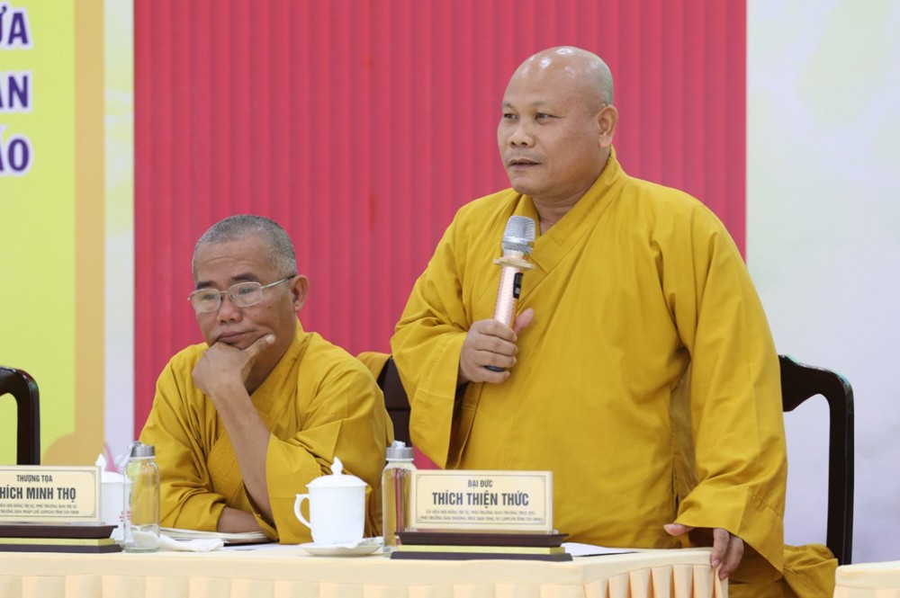Phiên họp ghi nhận ý kiến đóng góp của: ĐĐ. Thích Lệ Ngôn – Phó Trưởng BTS kiêm Trưởng ban Hoằng pháp GHPGVN tỉnh; ĐĐ. Thích Thiện Danh – Phó Thư ký BTS GHPGVN tỉnh; ĐĐ. Thích Thiện Thức – Uỷ viên HĐTS, Phó Trưởng ban Thường trực BTS GHPGVN tỉnh; NS. Thích Nữ Diệu Huệ – Uỷ viên Thường trực BTS GHPGVN tỉnh; TT. Thích Minh Thọ – Phó Trưởng BTS kiêm Trưởng ban Pháp chế GHPGVN tỉnh;…
