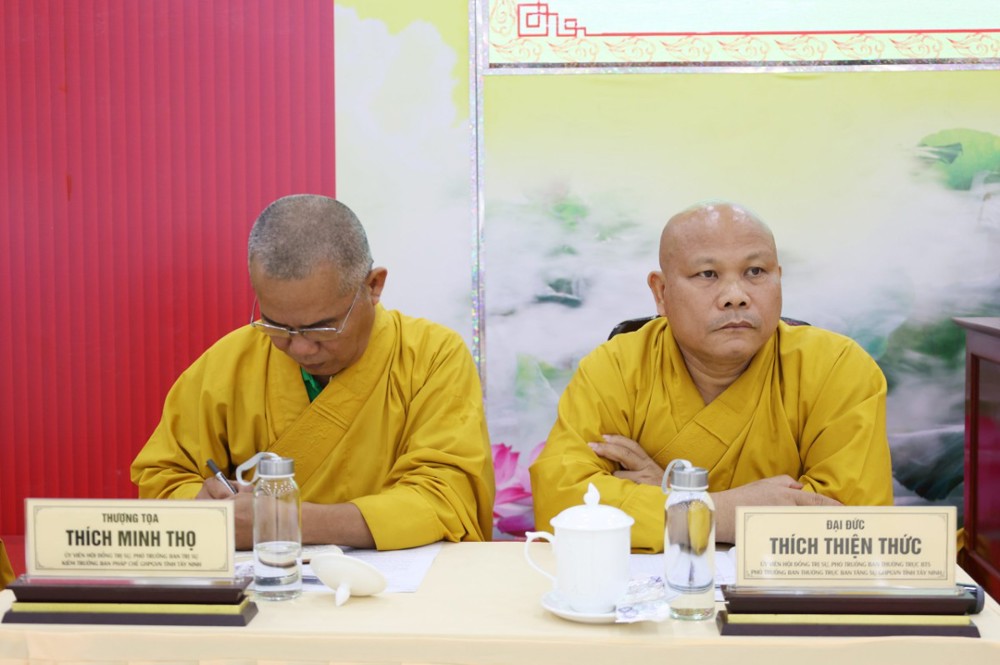 Quang lâm chứng minh và tham dự phiên họp có: HT. Thích Minh Thiện – Uỷ viên HĐTS, Phó Trưởng ban Hoằng pháp TƯ, Chứng minh - Cố vấn BTS GHPGVN tỉnh Tây Ninh; TT. Thích Quảng Tâm – Uỷ viên HĐTS, Phó Trưởng ban Từ thiện xã hội TƯ, Trưởng BTS GHPGVN tỉnh; ĐĐ. Thích Thiện Thức – Uỷ viên HĐTS, Phó Trưởng ban Thường trực BTS GHPGVN tỉnh; chư Tôn đức Phó BTS GHPGVN tỉnh; chư Tôn đức Ban Thường trực BTS GHPGVN tỉnh đồng về chứng minh và tham dự.