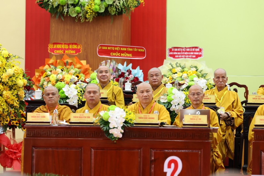 Chủ tọa đoàn có: TT. Thích Phước Nguyên - Phó Tổng Thư ký kiêm Chánh Văn phòng II TW GHPGVN; cùng chư Tôn đức Phó Văn phòng 2 Trung ương; TT. Thích Quảng Tâm - Ủy viên HĐTS, Trưởng Ban Trị sự GHPGVN tỉnh Tây Ninh, Trưởng ban Tổ chức Đại hội; cùng chư Tôn đức HĐTS, Thường trực Ban Trị sự GHPGVN tỉnh Tây Ninh.