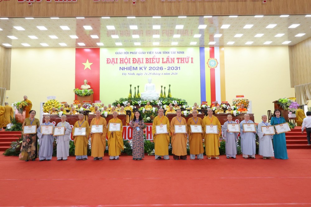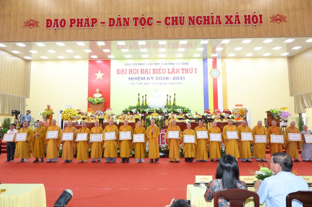 Nhằm ghi nhận và biểu dương những thành tựu Phật sự nổi bật trong nhiệm kỳ 2022 - 2027, Trung ương Giáo hội Phật giáo Việt Nam đã công bố Quyết định trao tặng Bằng tuyên dương công đức của Ban Thường trực Hội đồng Trị sự GHPGVN. Theo đó, 21 tập thể và 52 cá nhân thuộc Ban Trị sự GHPGVN tỉnh Tây Ninh được trao Bằng tuyên dương công đức vì đã có nhiều đóng góp tích cực, góp phần vào sự phát triển chung của Giáo hội và địa phương.