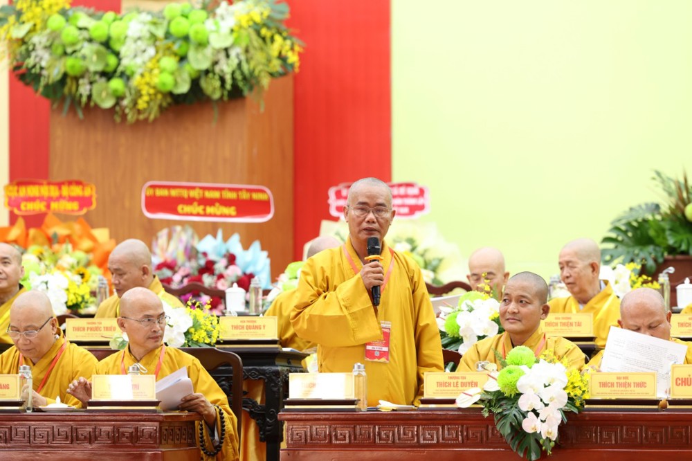 Thay mặt Chủ tọa đoàn, Thượng tọa Thích Quảng Tâm - Trưởng ban Trị sự GHPGVN tỉnh Tây Ninh, Trưởng ban Tổ chức Đại hội phát biểu khai mạc, trân trọng chào mừng chư Tôn đức, quý đại biểu cùng toàn thể khách quý đã quang lâm tham dự. Thượng tọa nhấn mạnh đây là nhiệm kỳ mang ý nghĩa đặc biệt quan trọng trong bối cảnh sau khi tiến hành hợp nhất, hướng đến việc củng cố tổ chức, phát huy sức mạnh đoàn kết và nâng cao hiệu quả hoạt động Phật sự trong giai đoạn mới.