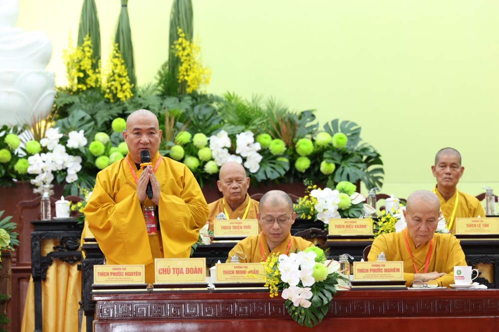 Thay mặt Chủ tọa đoàn, Thượng tọa Thích Phước Nguyên - Phó Tổng thư ký kiêm Chánh Văn phòng II TW GHPGVN phát biểu về quy trình Đề án nhân sự dự kiến tham gia Ban Trị sự GHPGVN tỉnh Tây Ninh nhiệm kỳ 2026 - 2031.