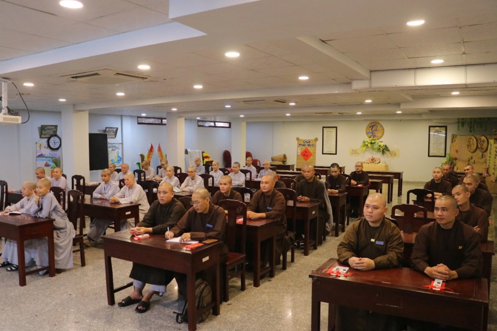 Tại đây, Thượng tọa đã có những lời huấn từ nhắc nhở Tăng Ni sinh luôn sống và tu tập trong tinh thần Lục hòa, giữ gìn sự đoàn kết, biết lắng nghe, nhường nhịn, hỗ trợ và nâng đỡ lẫn nhau trong đời sống tu học. Bên cạnh đó, Thượng tọa cũng khuyến tấn đại chúng giữ gìn oai nghi tế hạnh, tác phong khiêm cung, lời nói hòa nhã, đi đứng trang nghiêm, để mỗi Tăng Ni sinh trở thành tấm gương sáng về đạo hạnh, xứng đáng là người kế thừa mạng mạch Phật pháp, là bậc mô phạm nơi thiền môn và là điểm tựa tinh thần cho Phật tử hướng tâm về đời sống thiện lành, an lạc.
