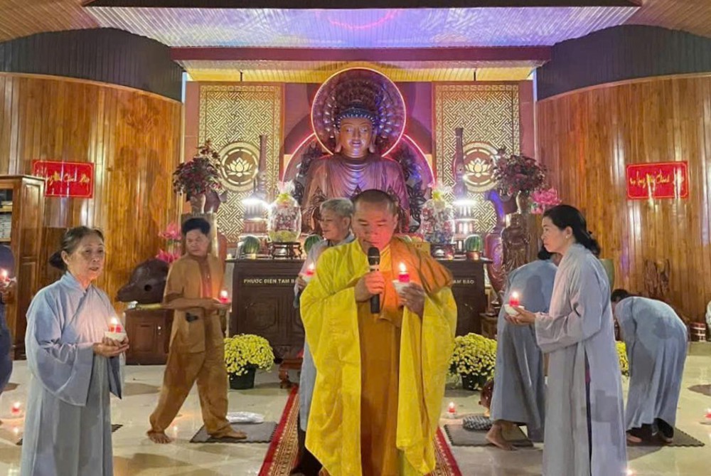 Sau thời pháp thoại, đại chúng đã trang nghiêm cử hành nghi thức truyền đăng, cùng hướng tâm về ánh sáng từ bi và trí tuệ của Đức Phật, nguyện nương theo ánh sáng giác ngộ ấy để vững bước trên con đường học Phật và hành Phật.