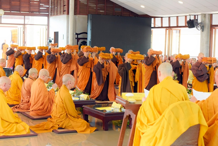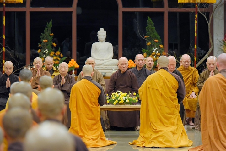 Vào lúc 9h tại giới trường, Hội đồng Thập sư khất sĩ nam đã truyền giới cho 19 giới tử nam chí thành thọ nhận giới pháp tu tập, cầu tiến trên lộ trình tâm linh, trọn đời phạm hạnh theo giới pháp đã thọ.