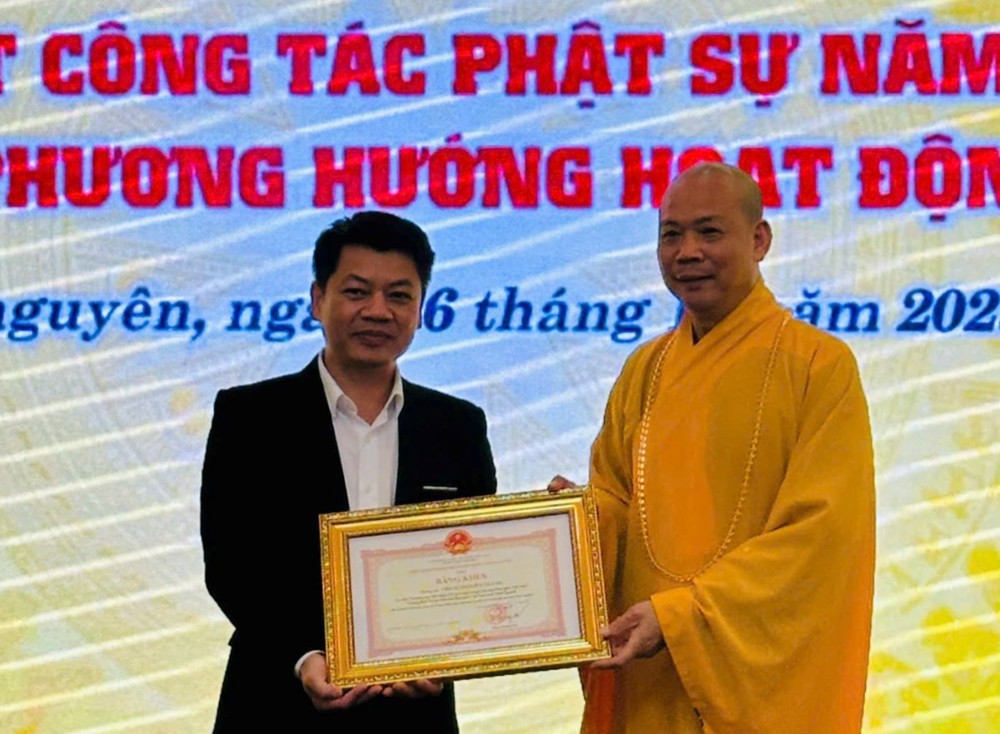Với những đóng góp tích cực trong công tác an sinh xã hội, đặc biệt là hoạt động cứu trợ đồng bào bị ảnh hưởng bởi thiên tai, tập thể Ban Trị sự GHPGVN tỉnh Thái Nguyên cùng 4 vị Tăng Ni tiêu biểu đã vinh dự được UBND tỉnh trao tặng Bằng khen.
