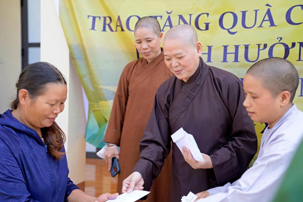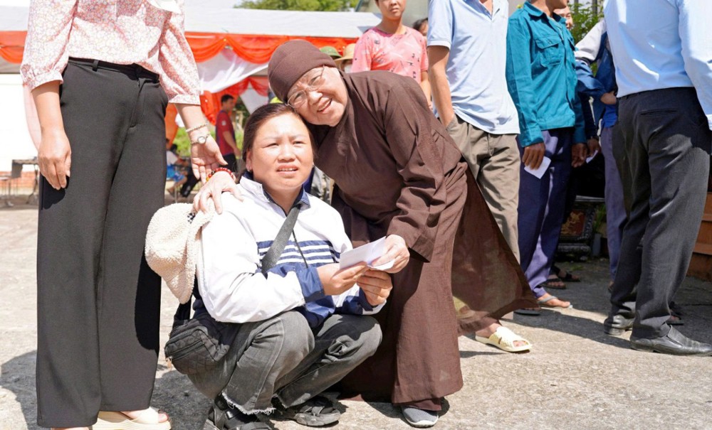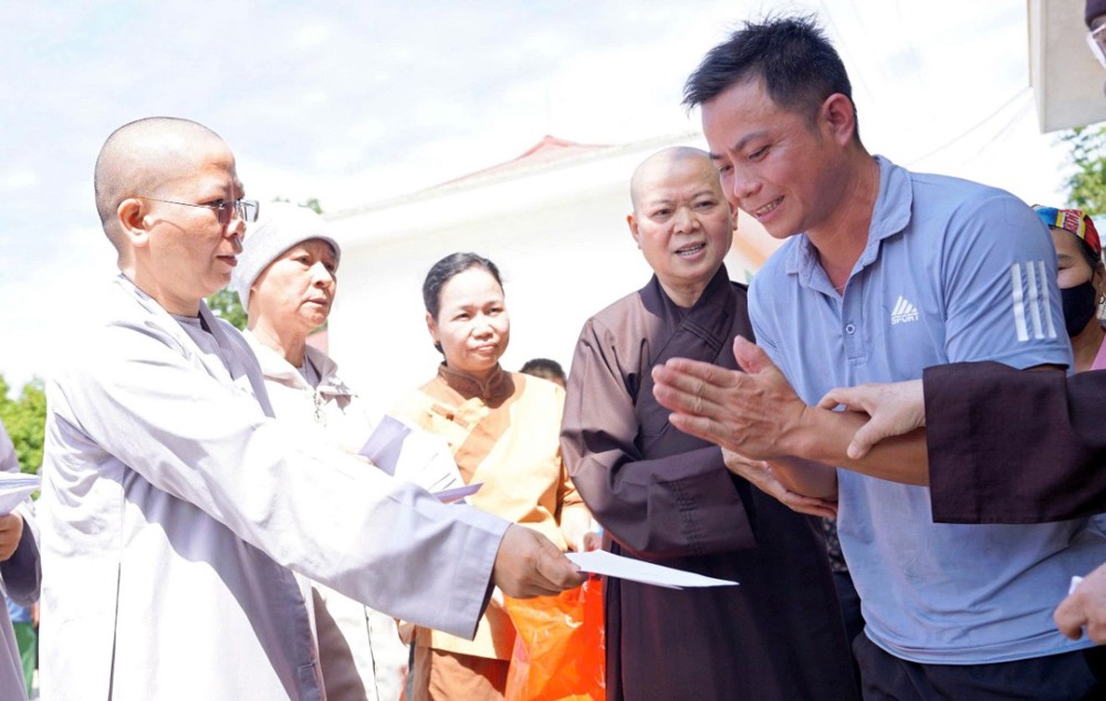 Thấu hiểu những mất mát đó, Ni trưởng Thích Nữ Từ Nhẫn – Phó trưởng Phân ban Ni giới Trung ương, Trưởng Phân ban Ni giới GHPGVN TP. Hồ Chí Minh, đã ân cần thăm hỏi, chia sẻ và động viên bà con nỗ lực vượt qua thử thách, vươn lên xây dựng lại cuộc sống bình an, tốt đẹp hơn.