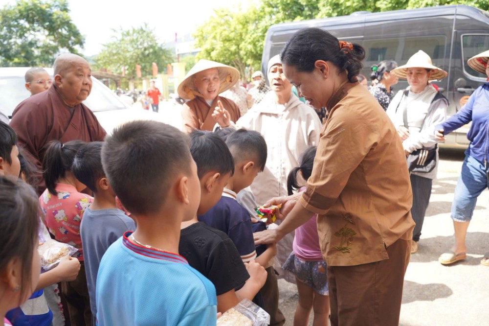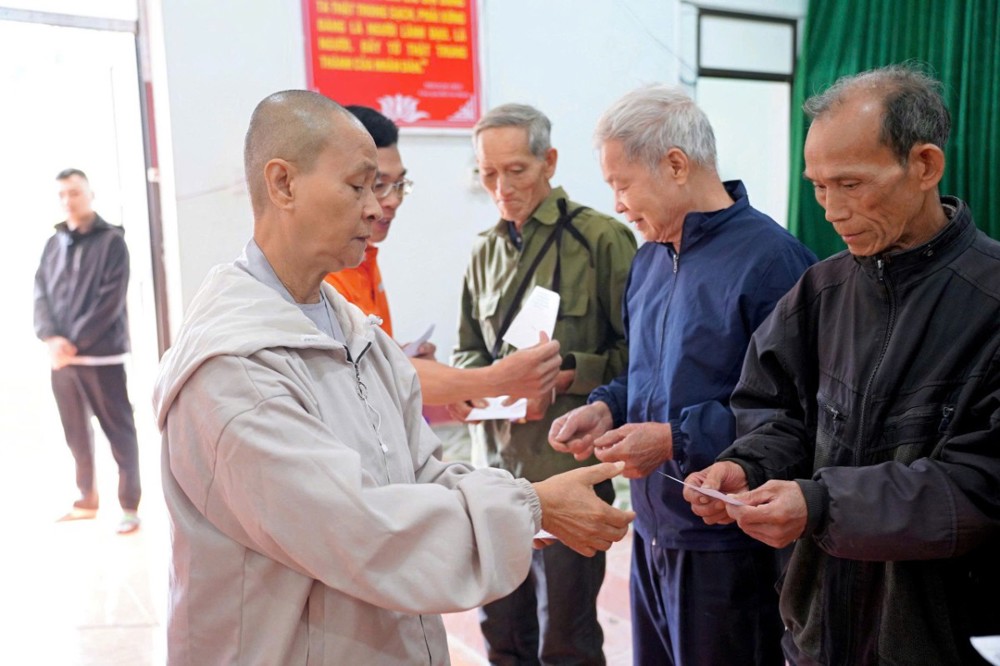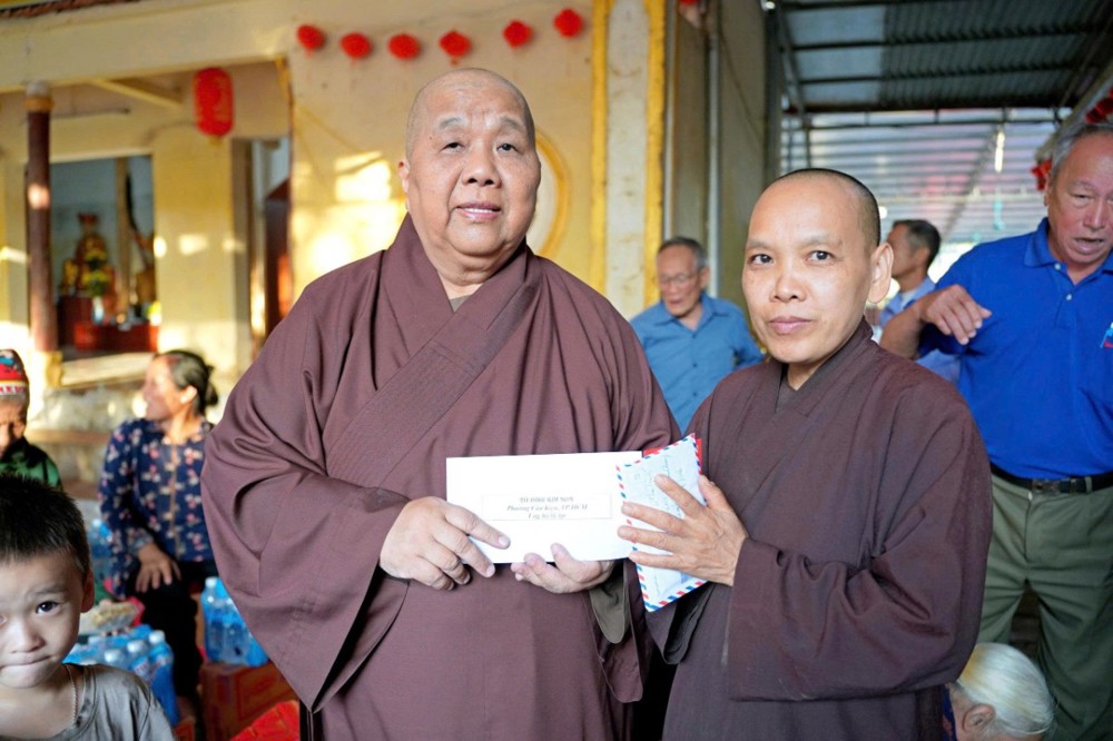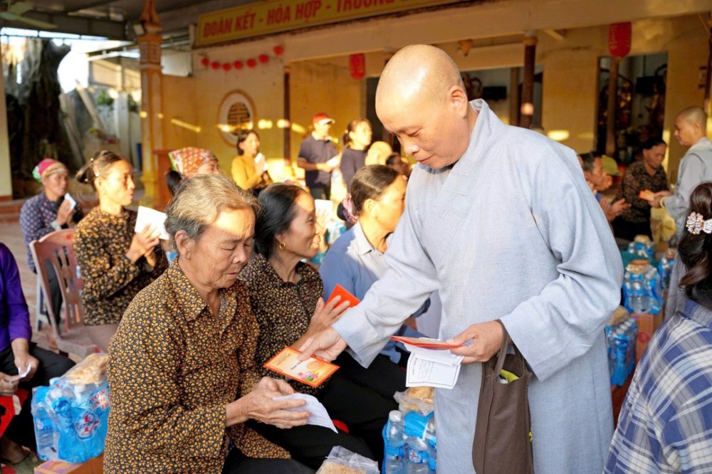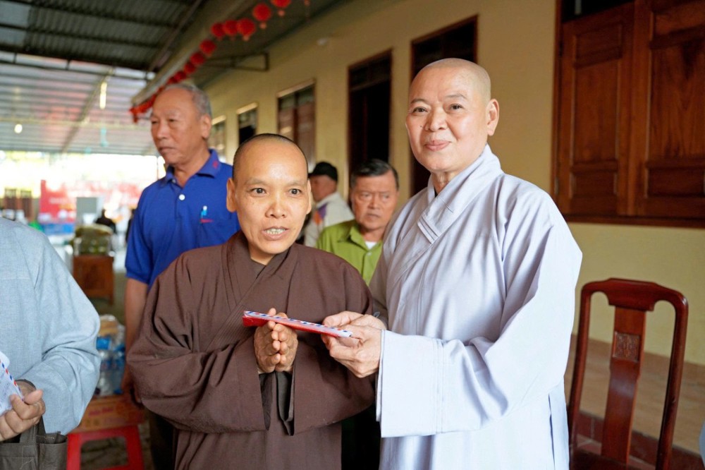 Trước đó, chiều 25/10/2025, đoàn đã đến chùa Phú Cốc (phường Trung Thành, tỉnh Thái Nguyên) để trao 50 phần quà cho các Phật tử có hoàn cảnh khó khăn, luôn gắn bó và hộ trì Tam Bảo trong thời gian qua.