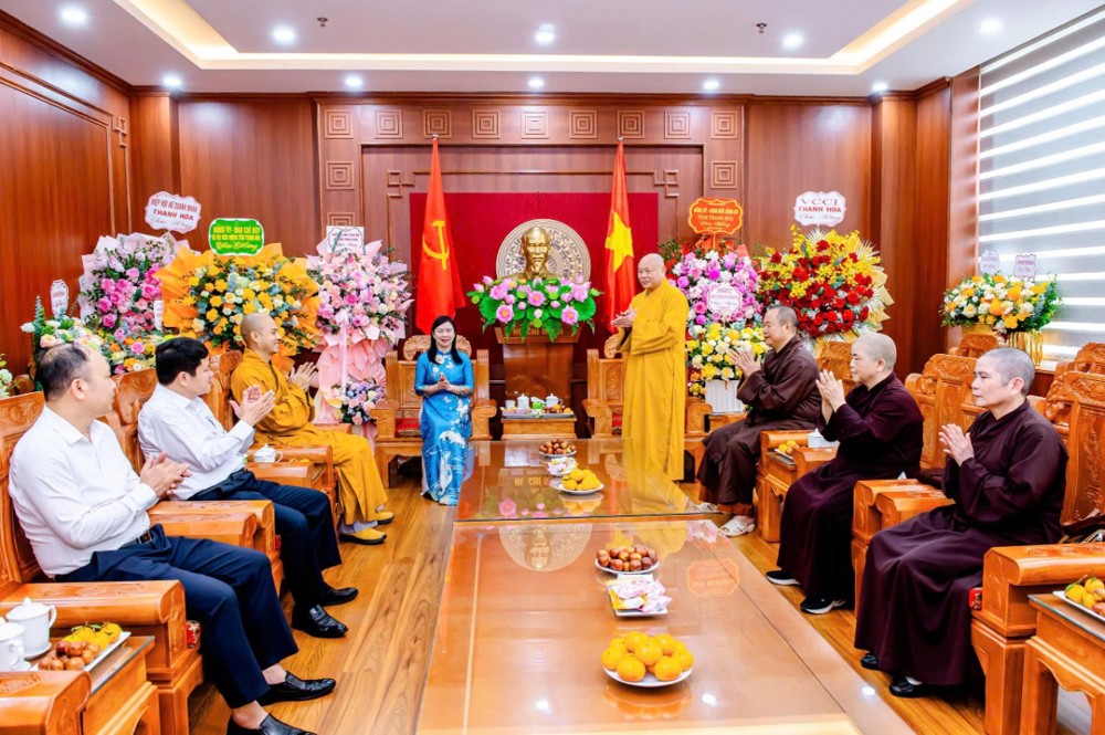 PSO - Ngày 17/11/2025, nhân Kỷ niệm 95 năm Ngày thành lập MTTQ Việt Nam (18/11/1930 – 18/11/2025), Ban Trị sự Giáo hội Phật giáo Việt Nam tỉnh Thanh Hóa do Thượng tọa Thích Tâm Định - Ủy viên HĐTS, Trưởng Ban Trị sự GHPGVN tỉnh làm trưởng đoàn, tham dự cùng đoàn có Thượng tọa Thích Tâm Hiền - Phó Trưởng Ban Trị sự, Ni trưởng Thích Đàm Hòa - Ủy viên Dự khuyết HĐTS, Phó BTS Phật giáo tỉnh, NS. Thích Đàm Thành - Phó BTS Phật giáo tỉnh, cùng chư Tôn đức Thường trực, Văn Phòng Ban Trị sự Phật giáo tỉnh tỉnh, đã đến chúc mừng UBMTTQ tỉnh.