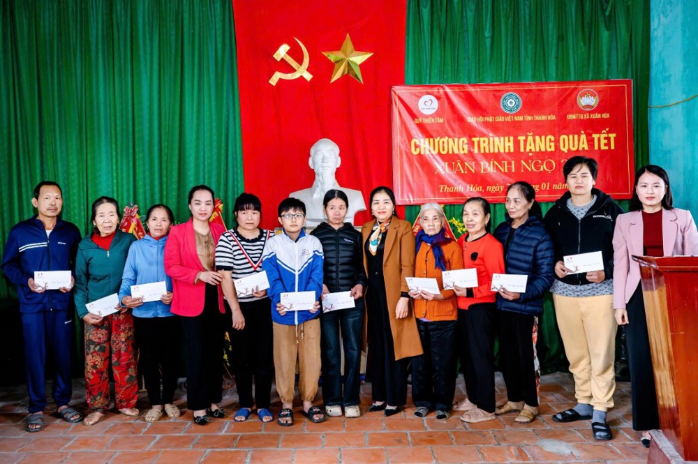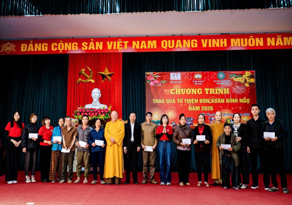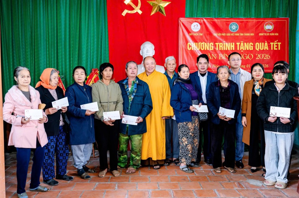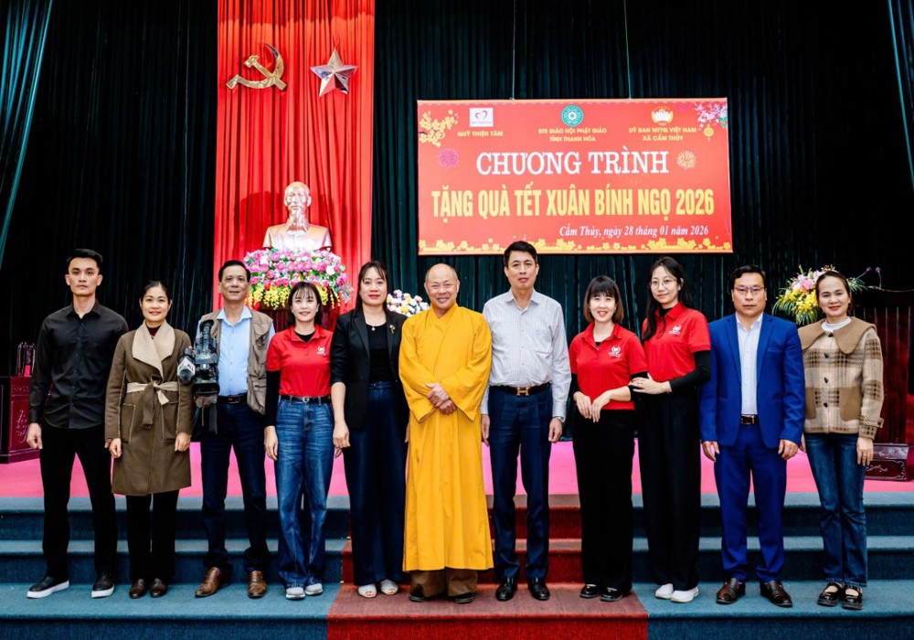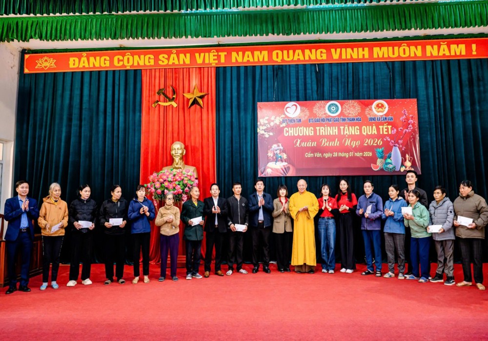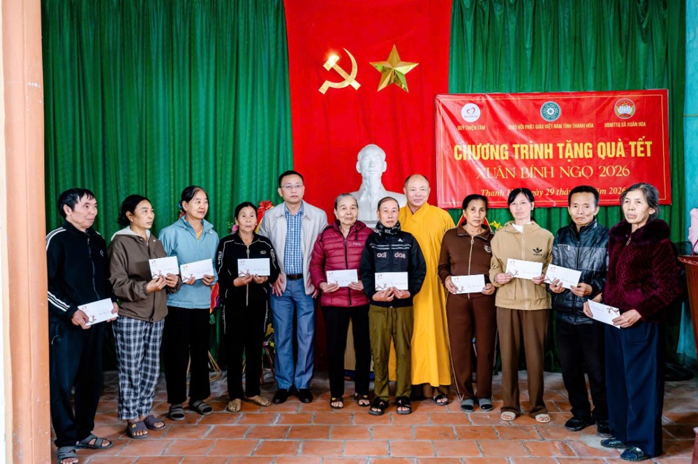 PSO – Trong hai ngày 28 và 29/01/2026, Ban Trị sự GHPGVN tỉnh Thanh Hóa phối hợp cùng Quỹ Thiện Tâm (Tập đoàn Vingroup) tổ chức chương trình tặng quà nhân dịp Tết xuân Bính Ngọ, nhằm chia sẻ, động viên và hỗ trợ các gia đình có hoàn cảnh khó khăn trên địa bàn các xã Cẩm Thủy, Cẩm Thạch, Cẩm Vân và Xuân Hòa.