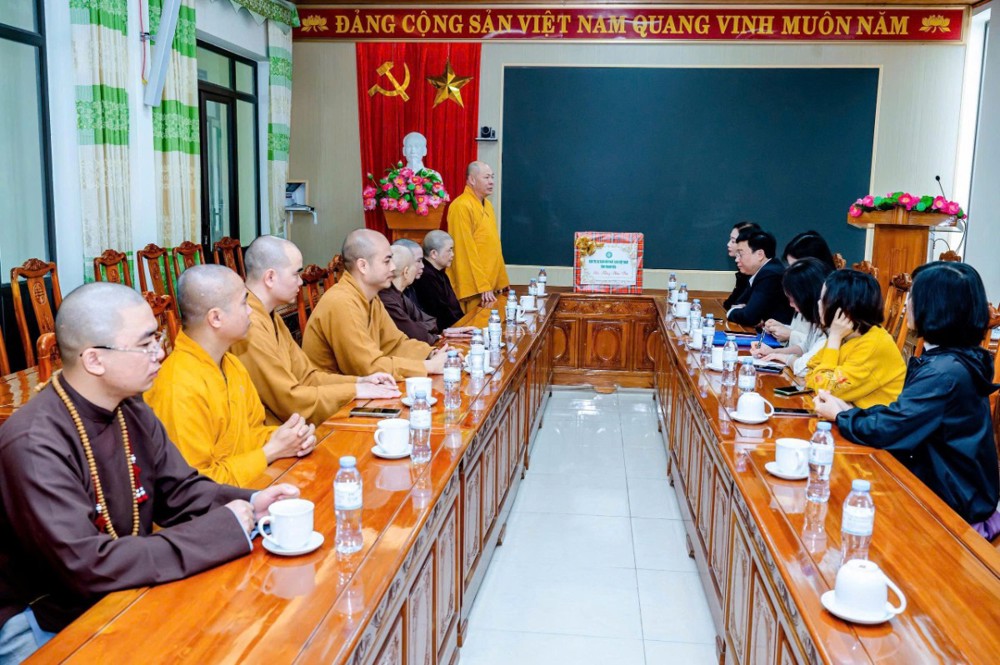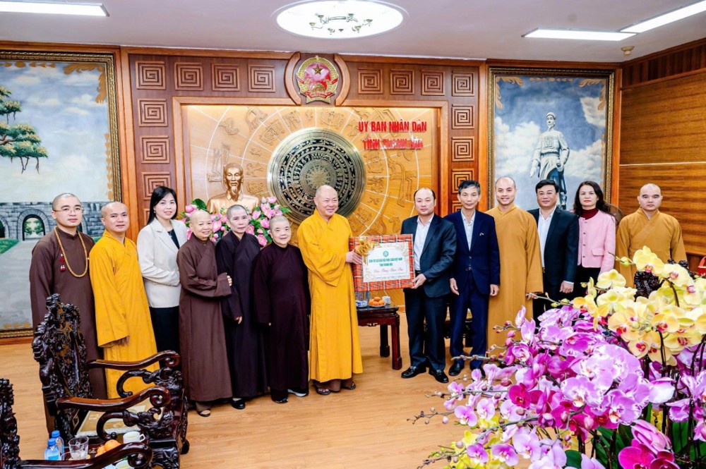 Tham gia đoàn còn có chư Tôn đức Tăng Ni Thường trực Ban Trị sự, chư Tôn đức Thư ký, Văn phòng Ban Trị sự Phật giáo tỉnh.