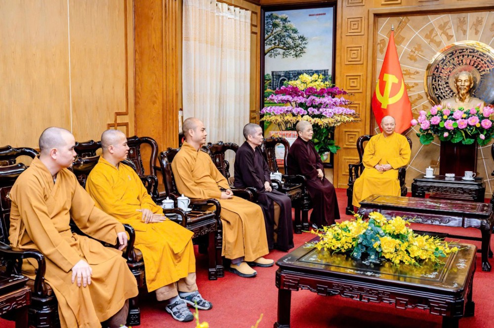 PSO – Trước thềm xuân mới Bính Ngọ, sáng 04/02/2026, đoàn Ban Trị sự GHPGVN tỉnh Thanh Hóa do Thượng tọa Thích Tâm Định, Trưởng ban Trị sự, làm trưởng đoàn đã đến thăm và chúc Tết lãnh đạo Tỉnh ủy, UBND, UBMTTQ, các sở, ban, ngành, Công an tỉnh, Phòng An ninh nội địa và Ban Tôn giáo.