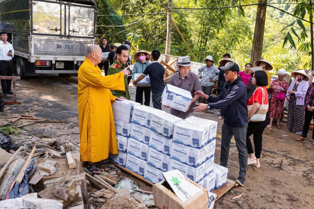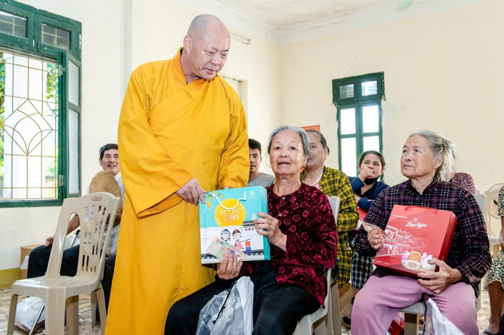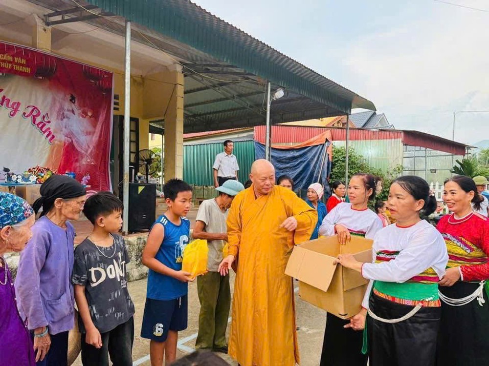 Phát biểu tại buổi trao quà, Thượng tọa Thích Tâm Định đã bày tỏ sự cảm thông sâu sắc trước những thiệt hại, mất mát mà bà con xã Minh Sơn và các cụ già tại Trại phong Cẩm Thạch phải gánh chịu sau cơn bão số 10 vừa qua.