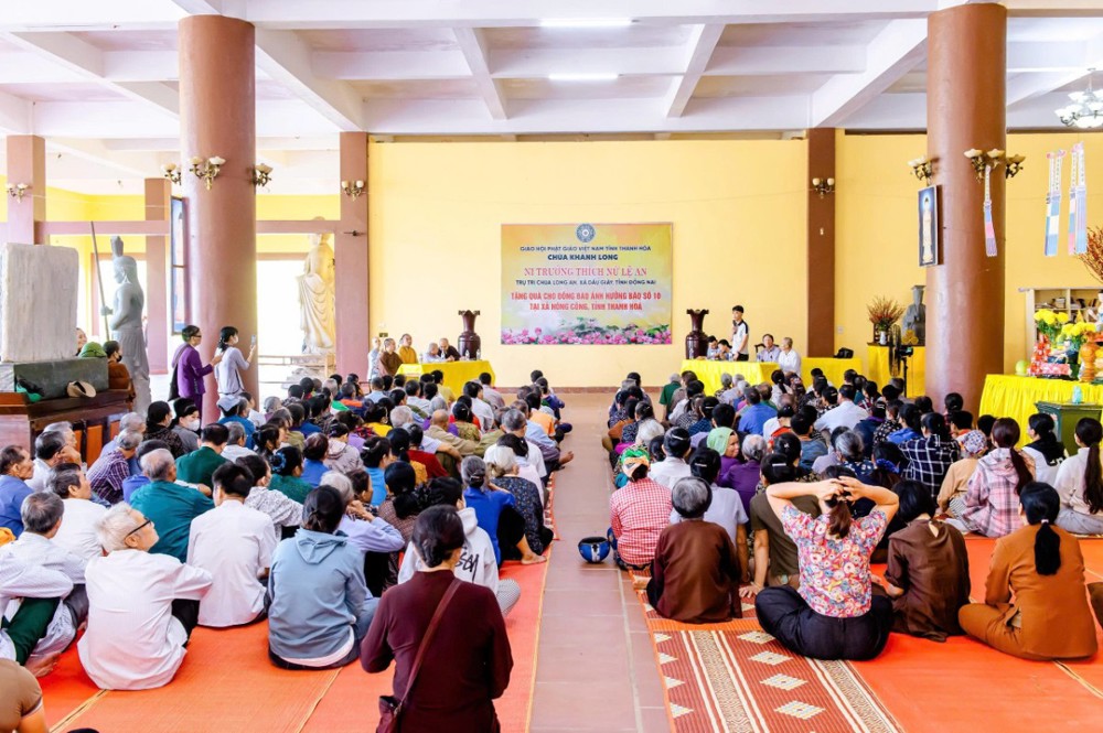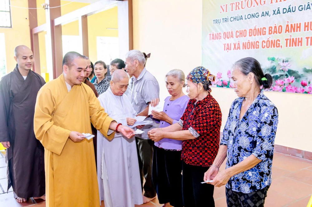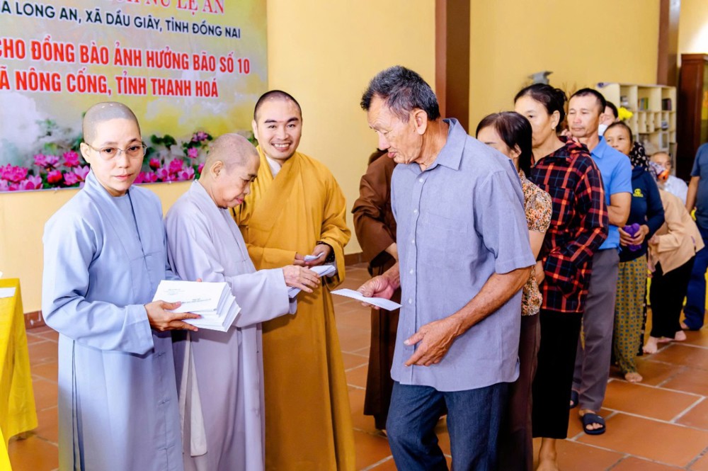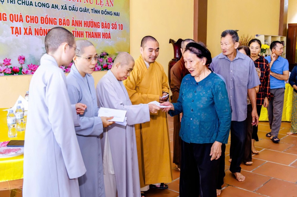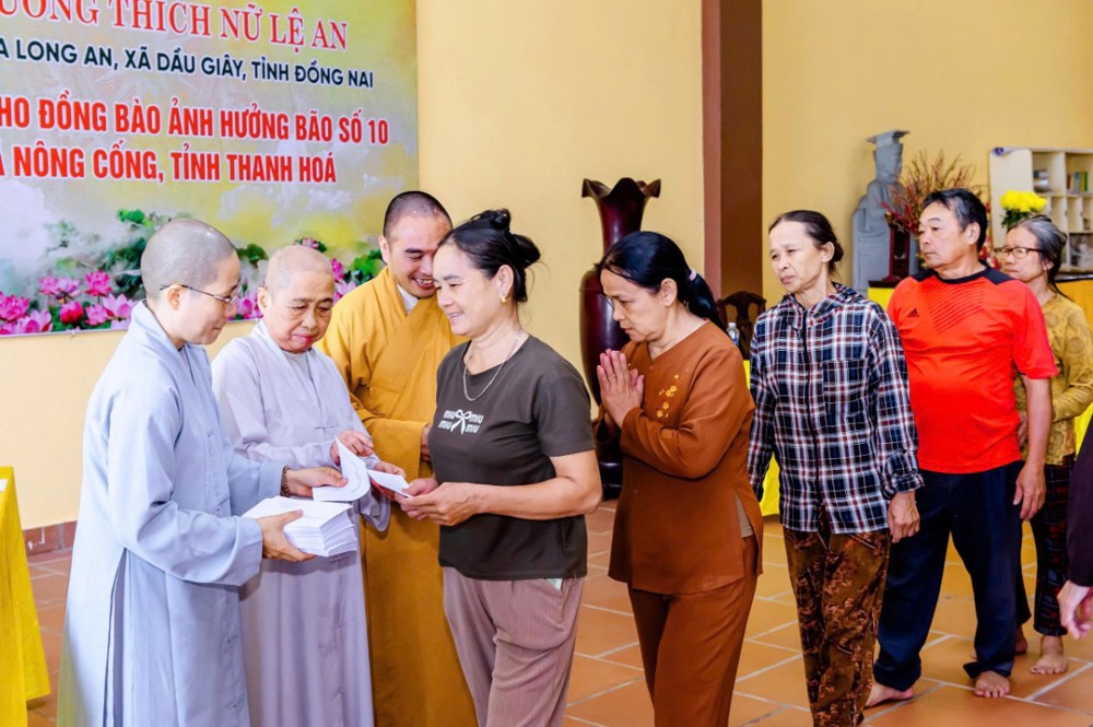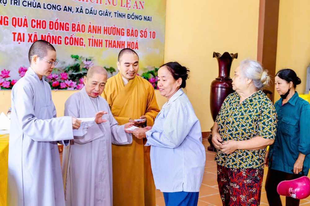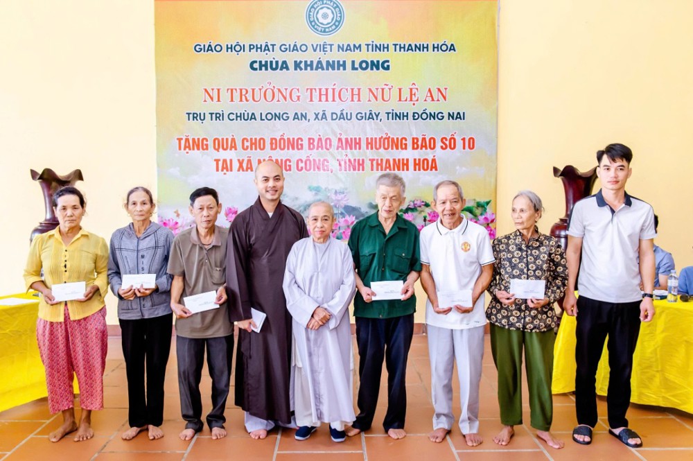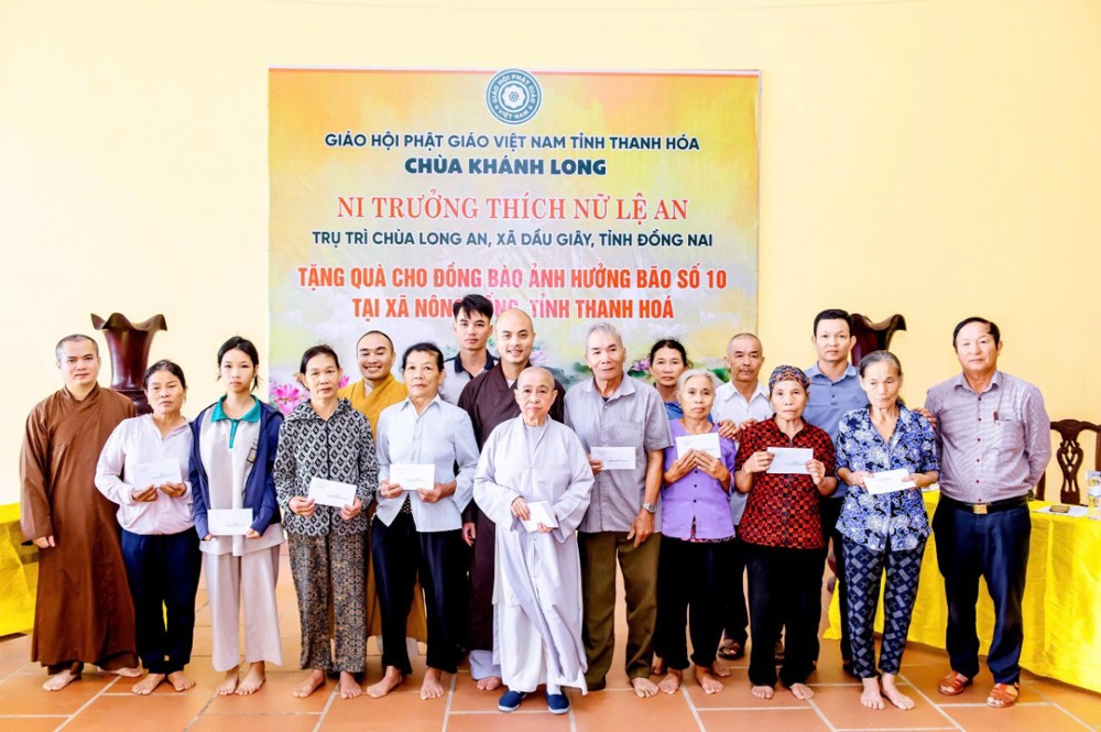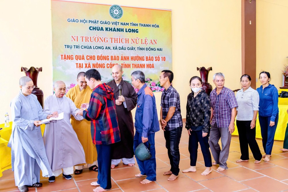 PSO - Sáng ngày 12/10/2025, Ni trưởng Thích Nữ Lệ An, cùng Ni chúng và Phật tử chùa Long An (xã Dầu Giây, tỉnh Đồng Nai) đã tổ chức chuyến thăm, tặng quà cho bà con nhân dân tại xã Nông Cống, nơi chịu ảnh hưởng nặng nề bởi cơn bão số 10 vừa qua.