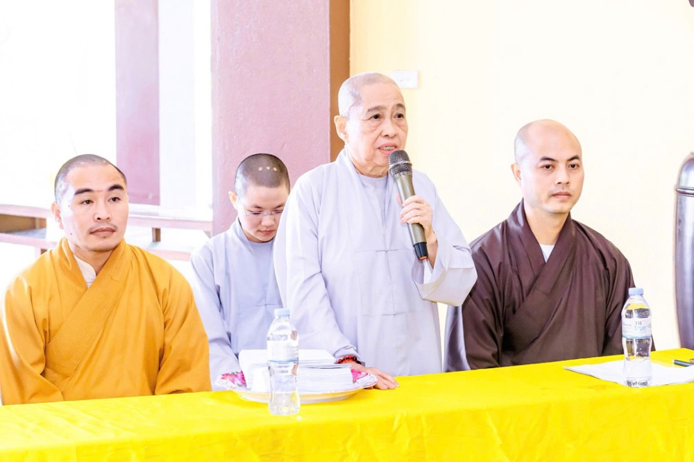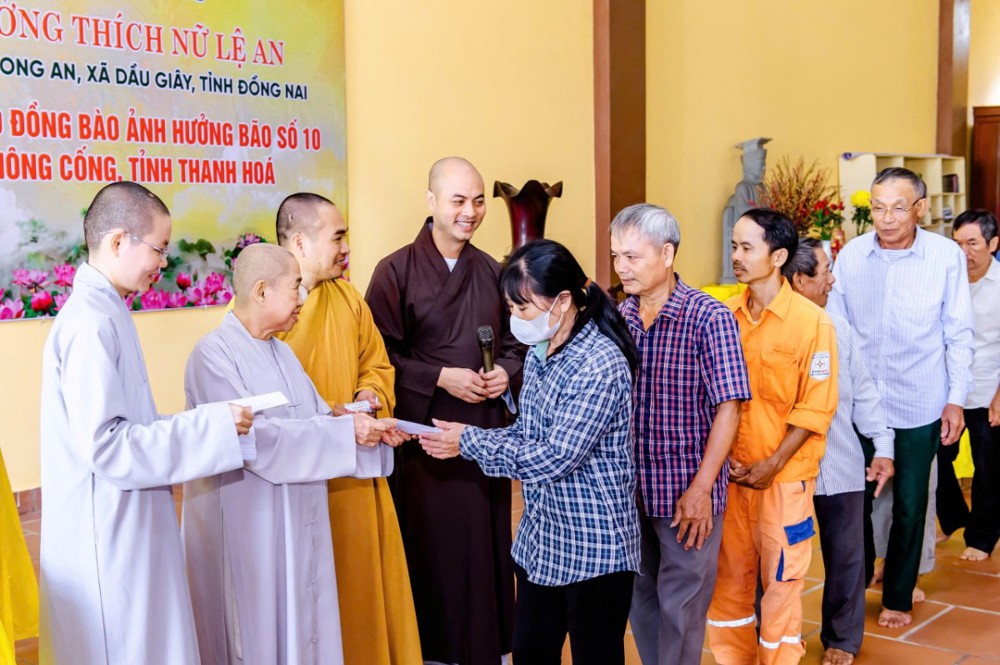 Ni trưởng Thích Nữ Lệ An phát biểu và chia sẻ: “Trước sự mất mát và khó khăn mà bà con đang trải qua sau cơn bão số 10, đoàn mong rằng những phần quà nhỏ hôm nay sẽ là nguồn động viên, chia sẻ phần nào nỗi vất vả của bà con. Phật giáo luôn đồng hành cùng dân tộc, lấy tinh thần từ bi làm nền tảng. Cầu mong chư Phật gia hộ cho bà con được bình an, sức khỏe, vượt qua khó khăn, sớm ổn định cuộc sống và tiếp tục vun đắp quê hương ngày càng tốt đẹp hơn.”