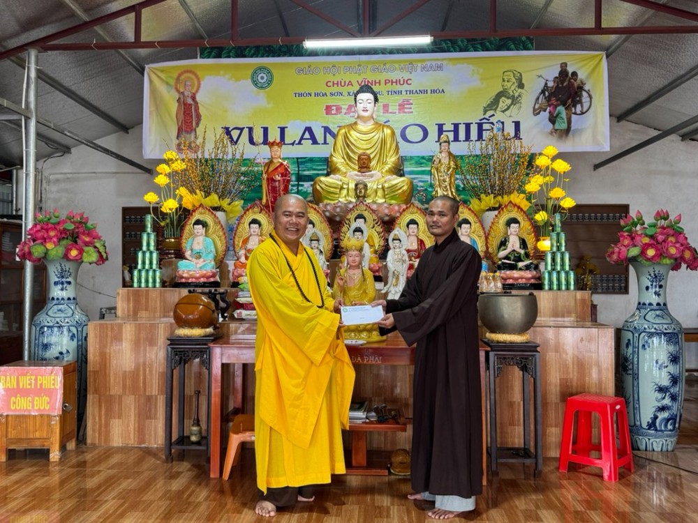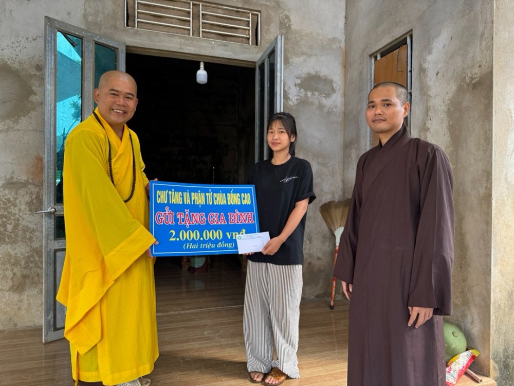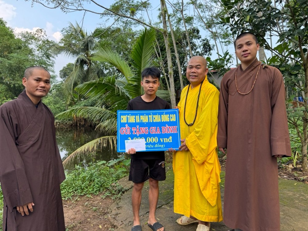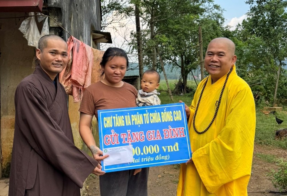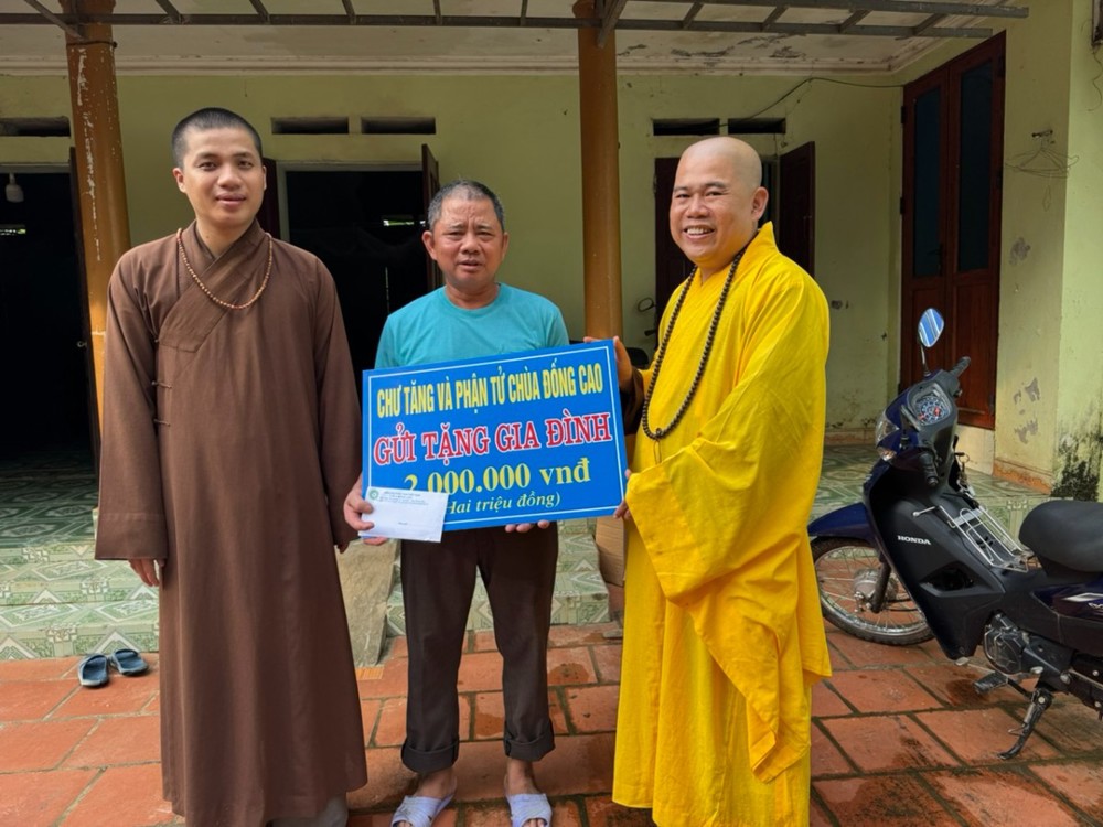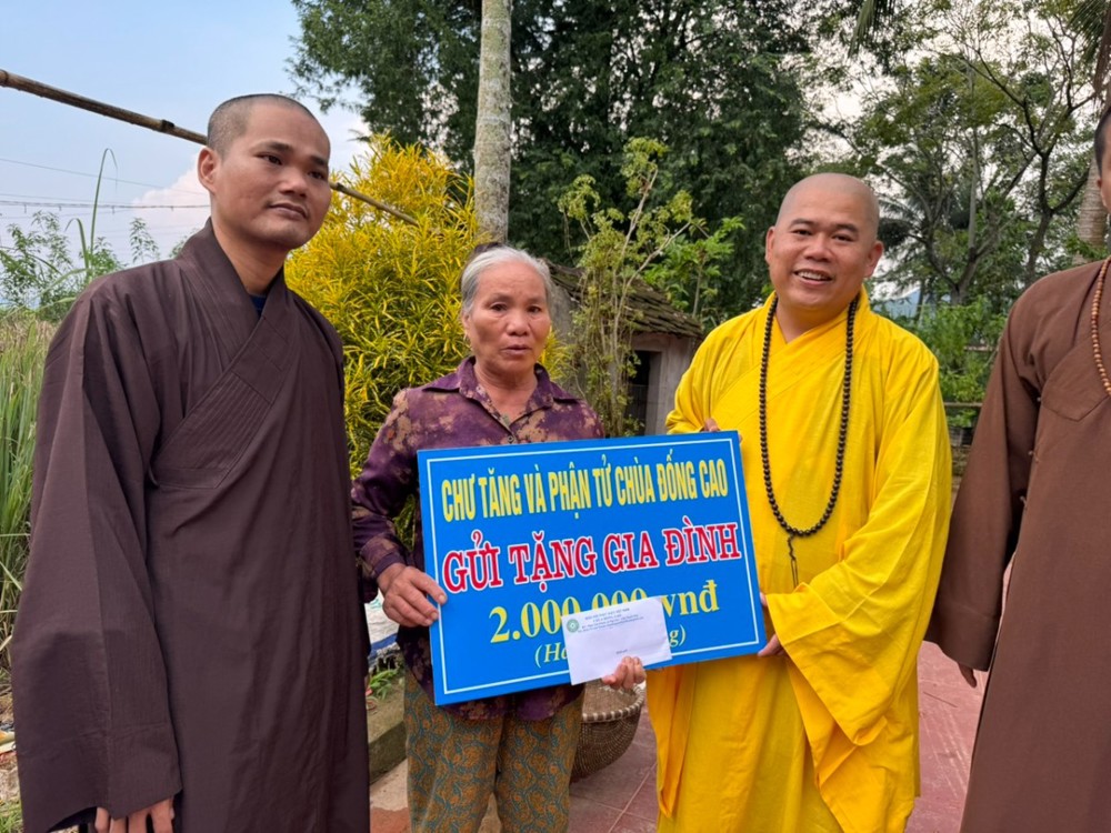 Không chỉ trao quà đến người dân, Đại đức Thích Tâm Hưng cũng đã thay mặt chư Tăng và Phật tử chùa Đống Cao cúng dường phẩm vật đến chùa Vĩnh Phúc, bày tỏ tấm lòng tri ân đến Đại đức Thích Nhuận Hoàng và chư Tăng bản tự vì đã đồng hành cùng đoàn trong thiện sự đầy ý nghĩa này.