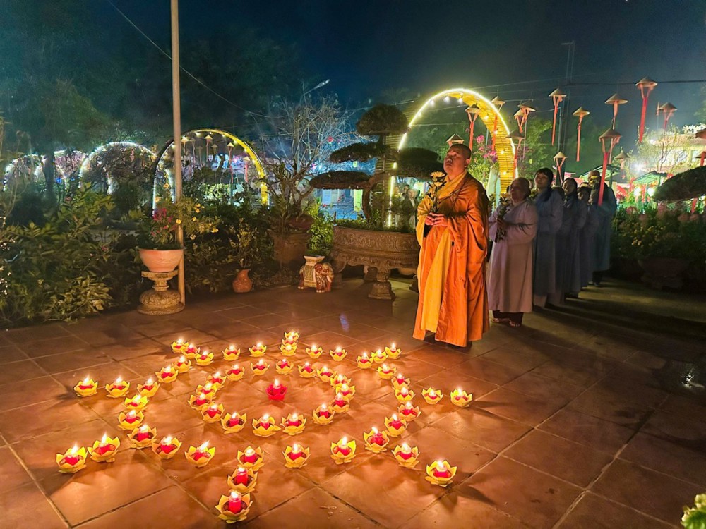 Buổi lễ tiếp tục với nghi thức lễ Tứ trọng ân do Đại đức Trụ trì hướng dẫn. Đại lễ khép lại trong niềm hoan hỷ của đại chúng với màn pháo hoa mừng ngày thành đạo và cùng nhau thọ lộc Phật trong tình đạo vị ấm áp bên bạn đồng tu.