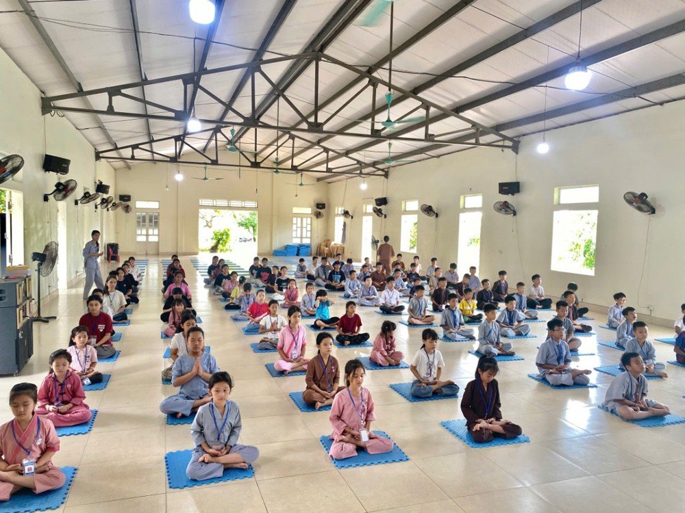 Sau khi làm thủ tục nhập khóa, các em được giới thiệu về chùa và các tôn tượng Phật – Bồ Tát đang được thờ tự, giúp các em làm quen với không gian thanh tịnh của Phật môn. Tiếp theo là phần sinh hoạt tập thể, ca hát khởi động, và thực tập oai nghi căn bản của người Phật tử khi đến chùa – do các anh chị trong Câu lạc bộ Thanh Thiếu Niên phụ trách.