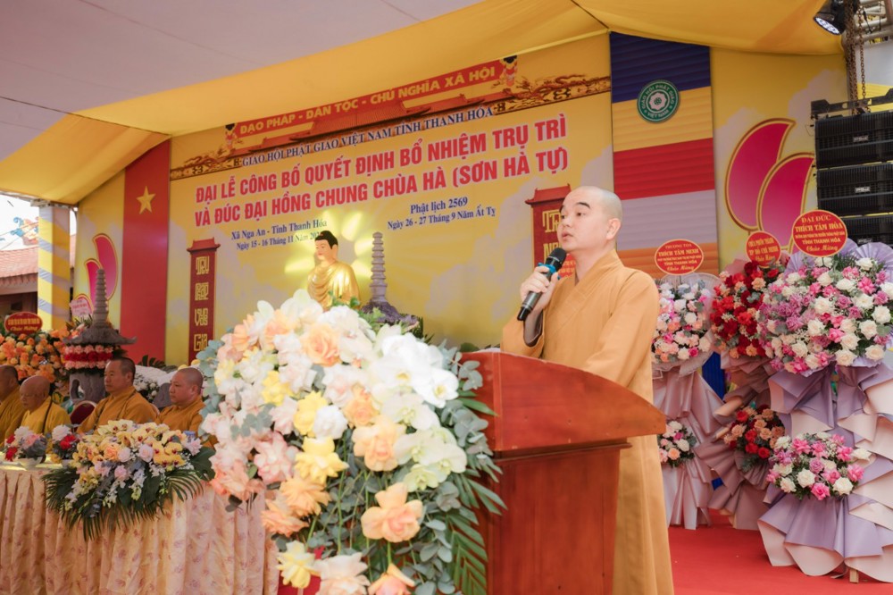 Sau lễ khai mạc, Đại đức Thích Nguyên Hiệp, Chánh Văn phòng BTS Phật giáo tỉnh đã tuyên đọc Quyết định của Ban Thường trực Ban Trị sự GHPGVN tỉnh Thanh Hóa về việc bổ nhiệm Đại đức Thích Nguyên Phước làm trụ trì chùa Hà.