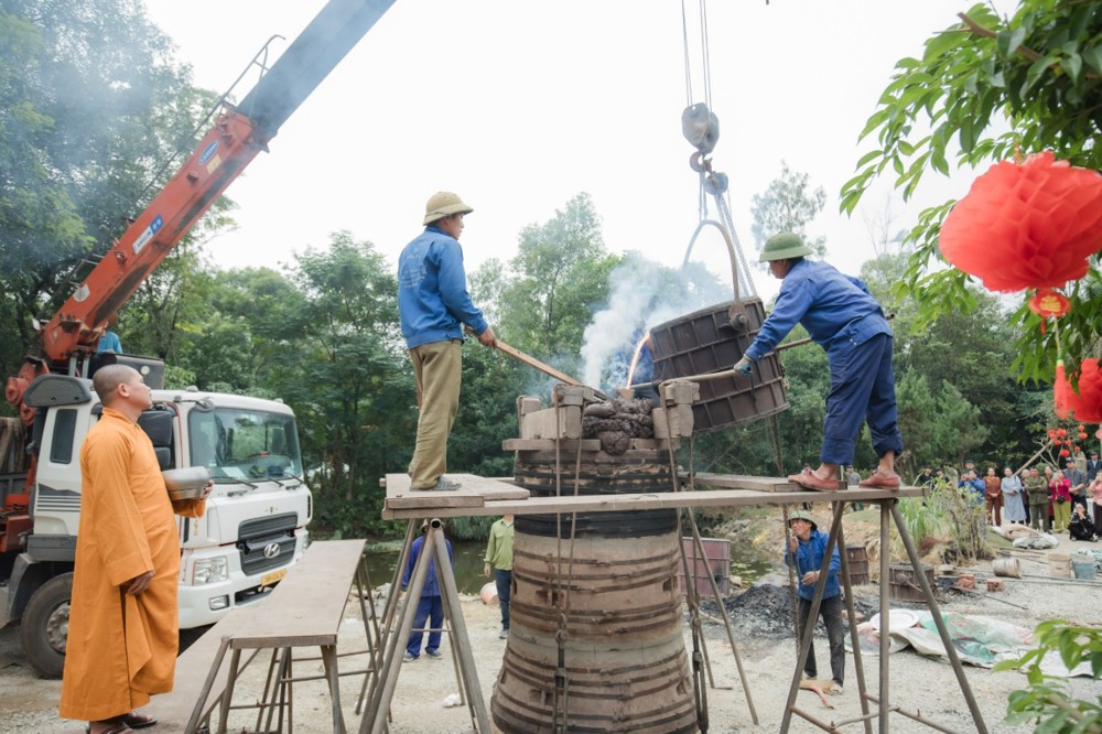 Trong khuôn khổ buổi lễ, chùa Hà cũng tiến hành nghi thức rót đồng đúc chuông, cầu nguyện quốc thái dân an, mưa thuận gió hòa, Phật pháp xương minh, đạo tràng ngày càng trang nghiêm.