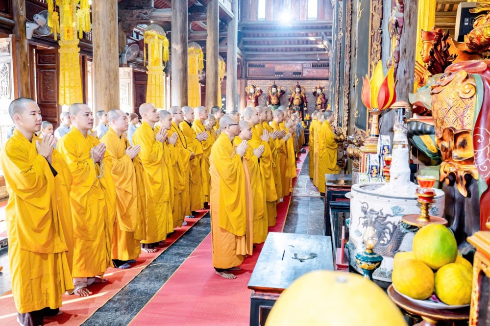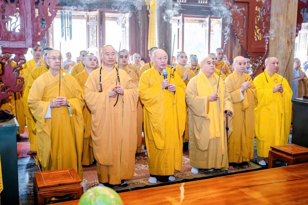 Tại buổi lễ, chư Tôn đức Tăng Ni và đại chúng đã thành kính dâng hương tưởng niệm, nhất tâm cầu nguyện Giác linh Đức Phật hoàng Trần Nhân Tông - vị minh quân anh hùng dân tộc, nhà tu hành kiệt xuất, Sơ tổ Thiền phái Trúc Lâm Yên Tử, đồng thời tưởng niệm Giác linh Trưởng lão HT. Thích Thanh Tứ - bậc cao Tăng thạc đức, trọn đời hiến dâng cho sự nghiệp hoằng dương Phật pháp, xây dựng Giáo hội.