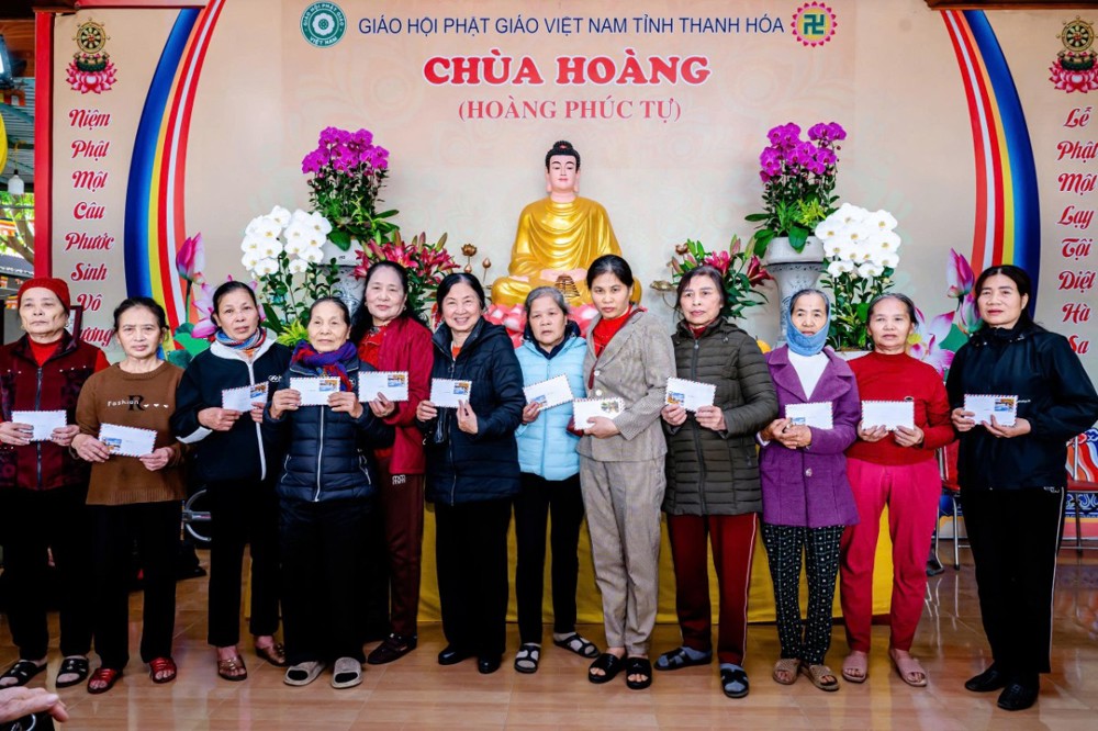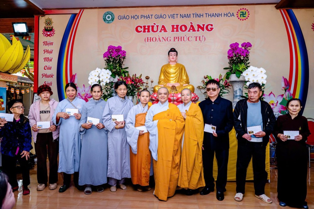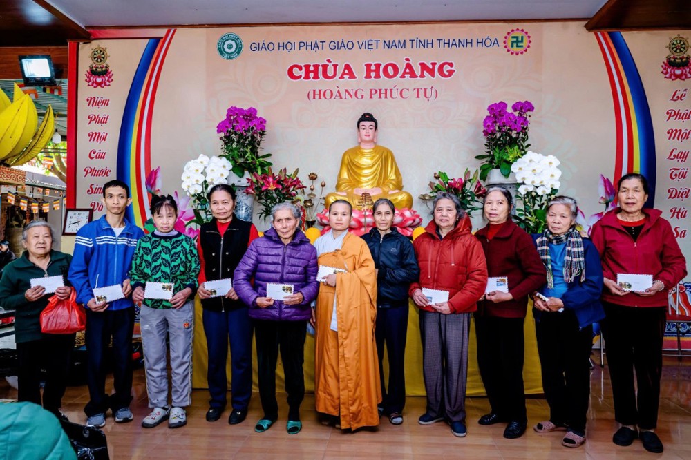Dịp này, chùa Hoàng cũng tổ chức trao 500 suất quà là tiền mặt (200 nghìn/suất) đến các đối tượng như: người già neo đơn, trẻ mồ côi, hộ nghèo, chất độc da cam, người khuyết tật, khiếm thị trong và ngoài xã Hoằng Hóa.