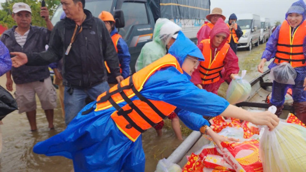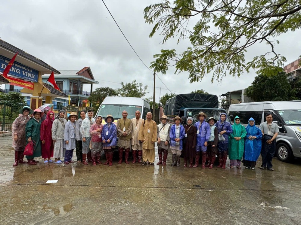 Trước đó, sáng ngày 2/11, đoàn đã tổ chức chuyến xe vận chuyển 15 tấn hàng hóa, nhu yếu phẩm thiết yếu hướng về Huế để kịp thời hỗ trợ đồng bào chịu ảnh hưởng thiên tai. Đến trưa ngày 4/11, phái đoàn chính thức khởi hành ra Huế, do Thượng tọa Thích Mật Tịnh – Phó Thường trực Ban Từ thiện Xã hội GHPGVN tỉnh Vĩnh Long, Trụ trì chùa Phước Nguyên (xã Lục Sĩ Thành, tỉnh Vĩnh Long) – làm trưởng đoàn.