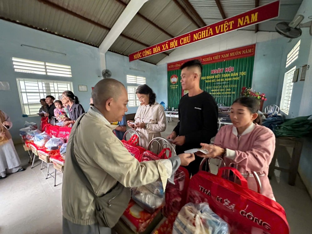 Tại mỗi điểm đến, Thượng tọa Thích Mật Tịnh và Đại đức Thích Nguyên Phúc thay mặt đoàn đã thăm hỏi, chia sẻ và động viên bà con cố gắng vượt qua khó khăn, sớm ổn định cuộc sống. Đại diện chính quyền địa phương các thôn, phường đã bày tỏ lòng tri ân sâu sắc trước tấm lòng từ bi, nhân ái và sự quan tâm thiết thực của Chư Tôn đức, Phật tử đối với bà con vùng lũ.