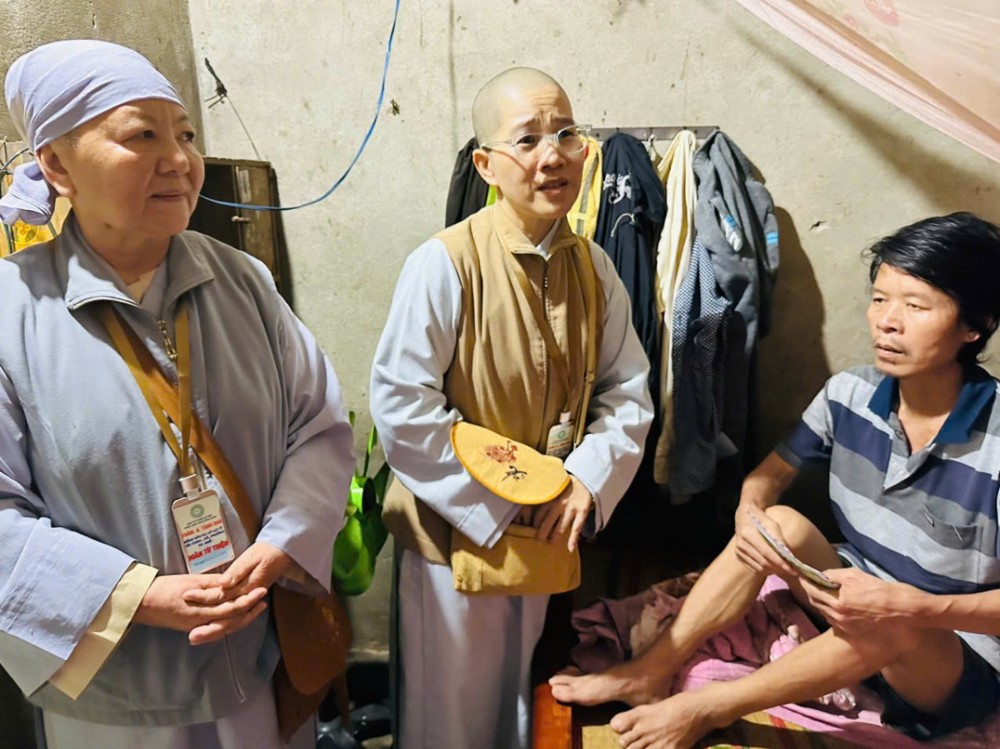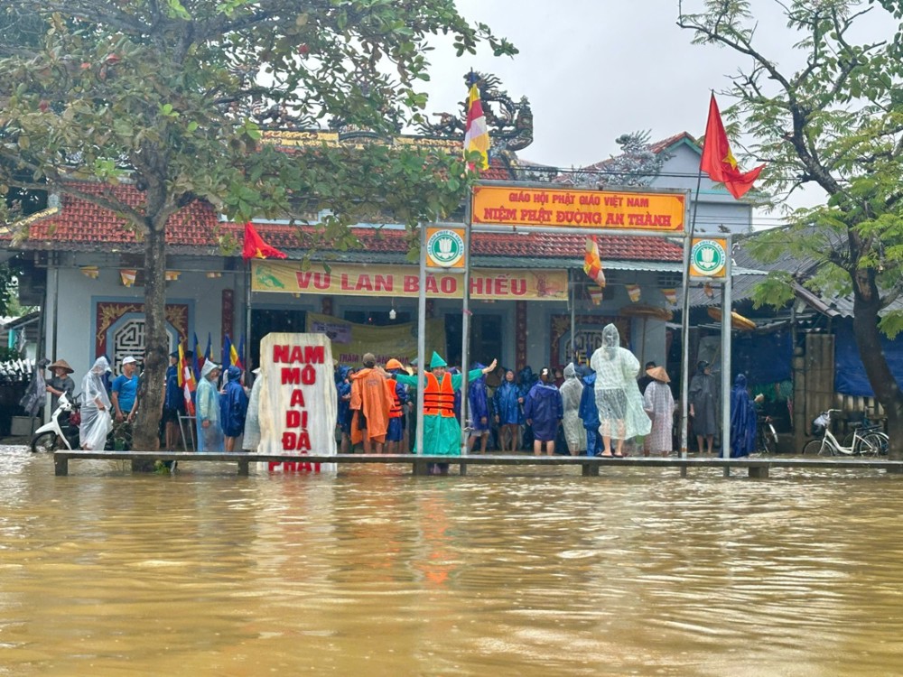 Khi đặt chân đến đất Cố đô – nơi hội tụ nhiều di sản văn hóa và Phật giáo gắn liền với các triều đại nhà Nguyễn – nay đang oằn mình trong biển nước, Sư cô Liên Thảo xúc động chia sẻ: “Quý Tôn đức trong đoàn vừa thực hiện các chuyến thiện nguyện tại Nghệ An và Thái Nguyên nên nguồn tài chính gần như cạn kiệt. Nhưng khi nghe tin quê hương Huế bị ảnh hưởng nặng nề do lũ lụt, chúng con thật không yên lòng, liền phát tâm vận động, kêu gọi quý Phật tử và các nhà hảo tâm cùng chung tay.”