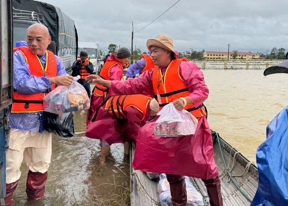 PSO - Hưởng ứng Thông bạch của Trung ương Giáo hội Phật giáo Việt Nam và lời kêu gọi của Ủy ban Trung ương Mặt trận Tổ quốc Việt Nam, cũng như lãnh đạo Thành phố Huế, ngày 4/11/2025, chư Tôn đức Tăng Ni cùng quý Phật tử các tỉnh phía Nam đã tổ chức chương trình trao quà cứu trợ đến bà con vùng bị ảnh hưởng nặng bởi mưa bão, lũ lụt tại các khu vực ven Thành phố Huế.