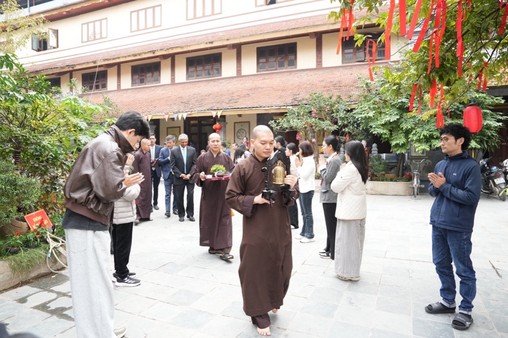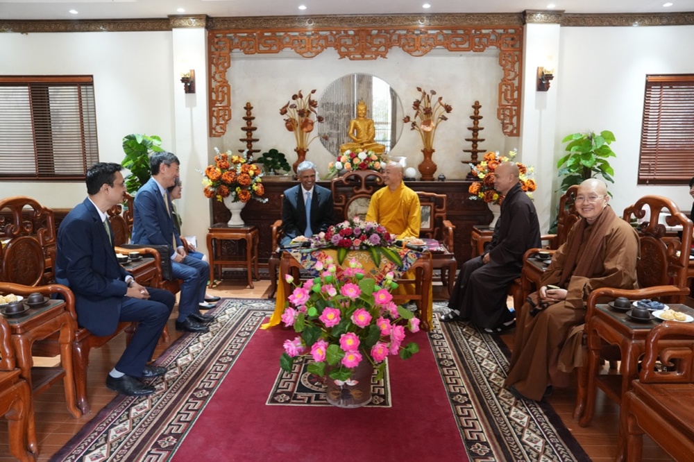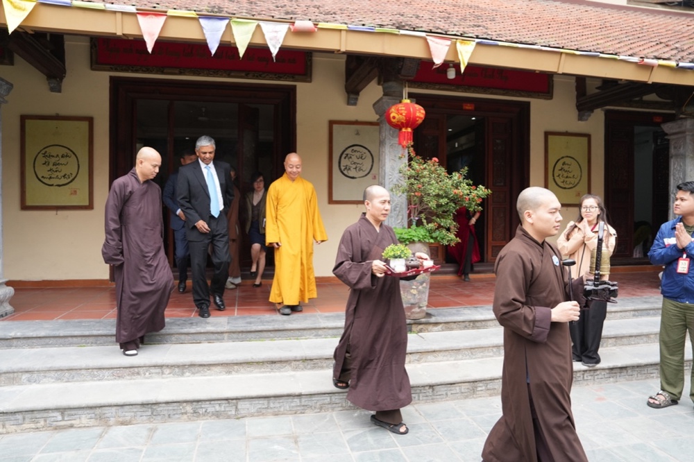 Đón tiếp phái đoàn, Hòa thượng Thích Thanh Huân – Ủy viên Thư ký Hội đồng Trị sự, Phó Chánh Văn phòng Trung ương GHPGVN, Trụ trì chùa Pháp Vân đã thân mật tiếp chuyện và trao đổi cùng đoàn về các định hướng tăng cường kết nối Phật giáo giữa hai quốc gia. Trong đó, hai bên đặc biệt nhấn mạnh vai trò của Phật giáo như một nhịp cầu văn hóa – tâm linh, góp phần làm sâu sắc hơn mối quan hệ hữu nghị truyền thống giữa Việt Nam và Ấn Độ.